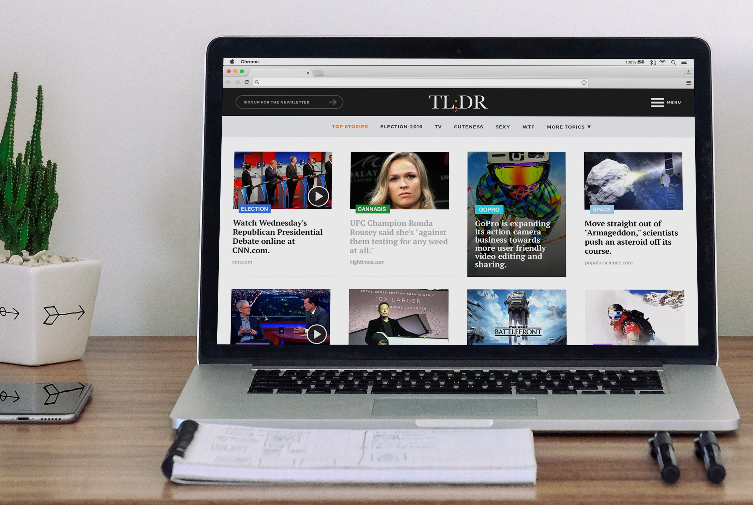 We spent a lot of time making all kinds of features for our news curation app, Inside, but the numbers kept saying the same thing: people just wanted to quickly browse the top news. So we made a simple, streamlined app called TL;DR to just give you the news right f*cking now, with conversational, jokey headlines to make it fun to read.