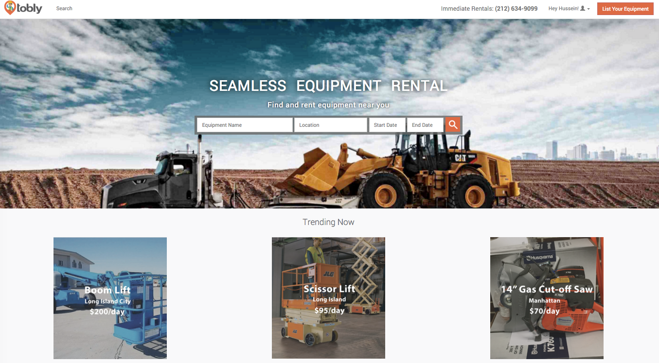 Marketplace where anyone can rent construction equipment