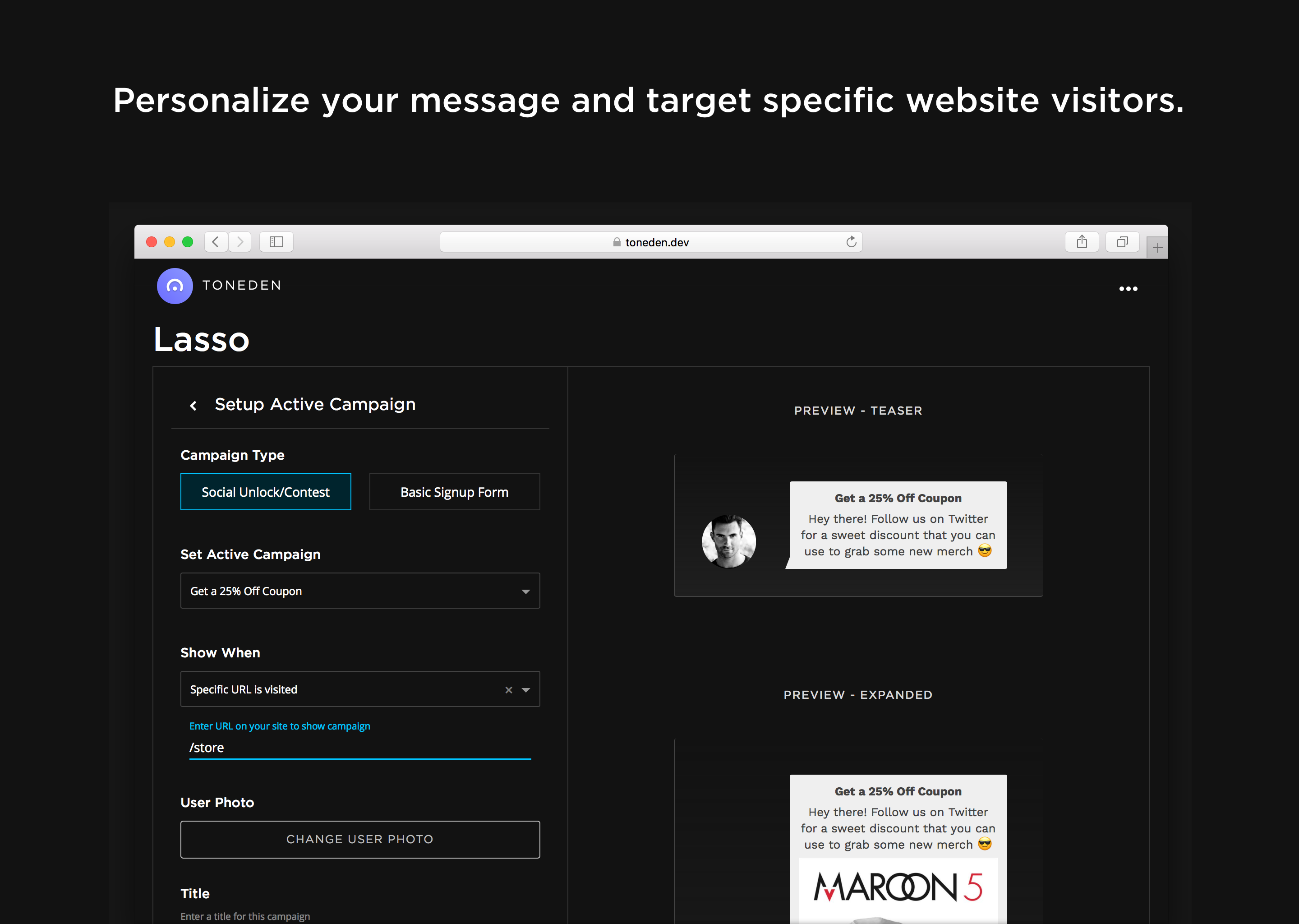 Lasso aims to make it easy for "any marketer to acquire new fans, drive social engagement, and build better relationships with their customers in a beautiful and intuitive way."