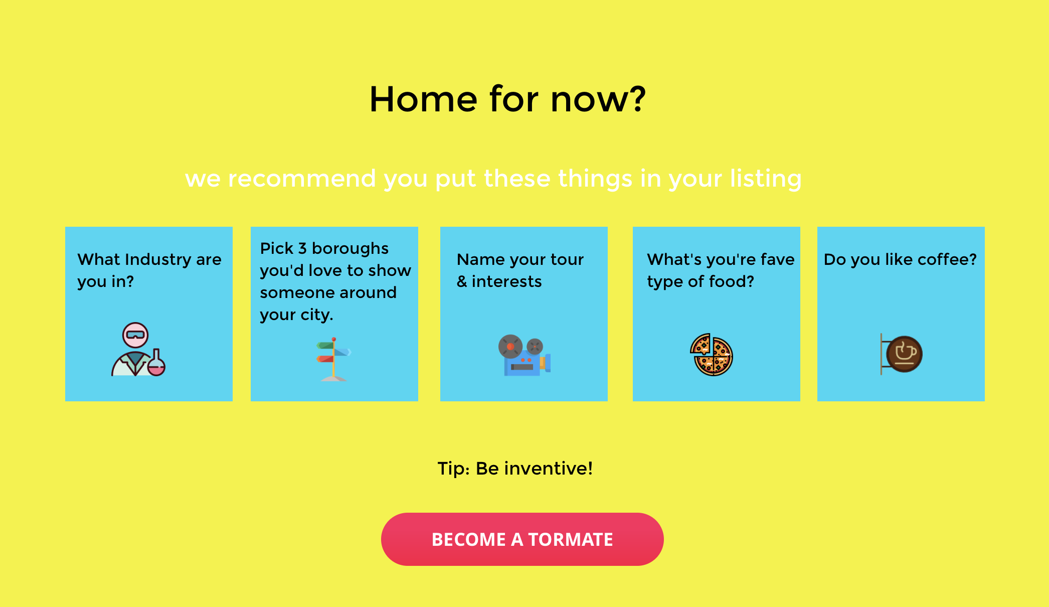 Thanks for the invite. I'm glad to share Tormate: a new website which links travellers to locals who share the same interests. I created this site due to the fact that millennialls are the most educated generation but worst paid. Additionally, the average college student leaves university with $33,000 in debt.