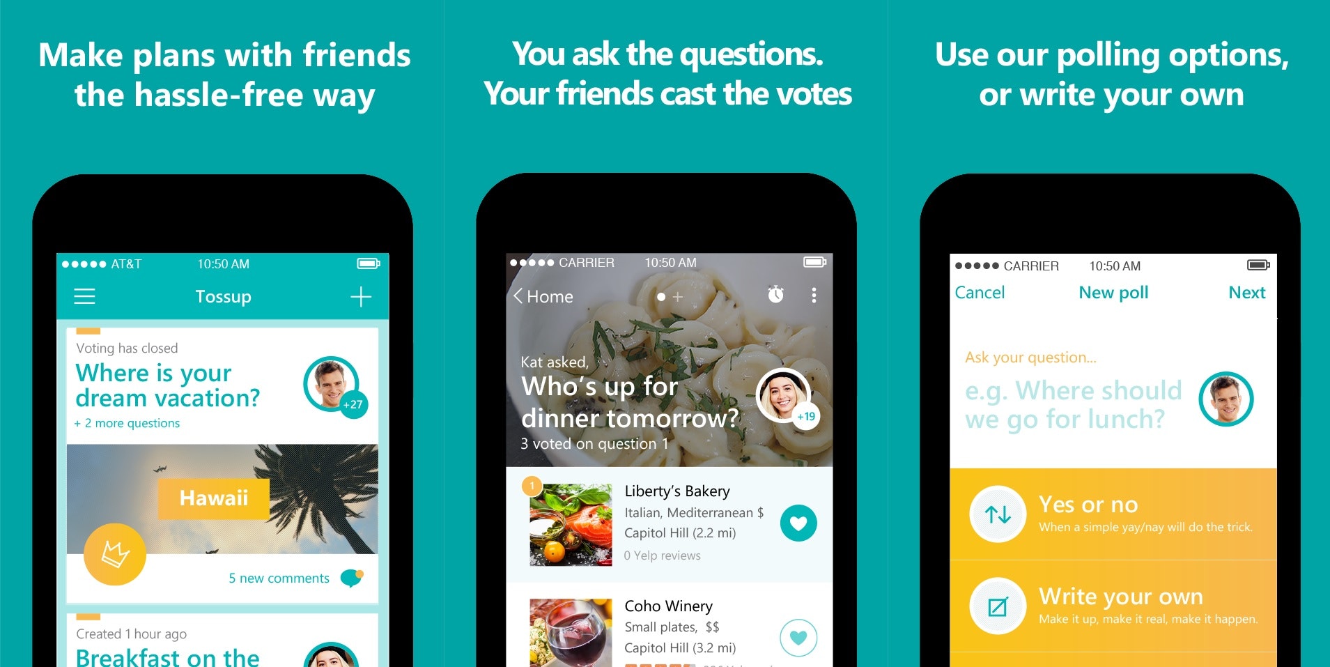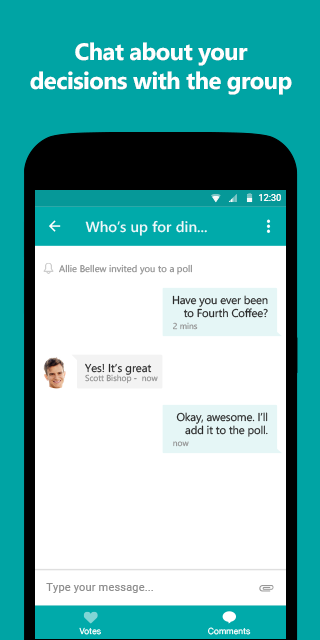 As the maker of a similar app (http://www.producthunt.com/tech/...), I'm intimidated by how well Microsoft has done with Tossup. I especially like the Yelp integration. But I agree that requiring every participant to install the app is a pretty big barrier, even when the app is free -- that's something I worked hard to avoid with VoteUp.