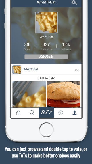 ToT: ThisOrThat is a social media app that lets you ask and respond to any ‘This or That’ question asked by your friends or any users worldwide. If you have 2 choices and no idea or want answers for a though choice; let your friends, family and followers help … See more