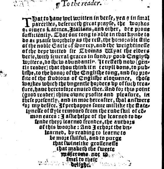 This collection of poetry published in 1557 wasn't the first book to put English poets in print, but the only examples of a predecessor anthology we have survive in a few scattered fragments. Tottel's Miscellany was printed three times in 1557 and six more before 1590, and several copies survive in tact.
