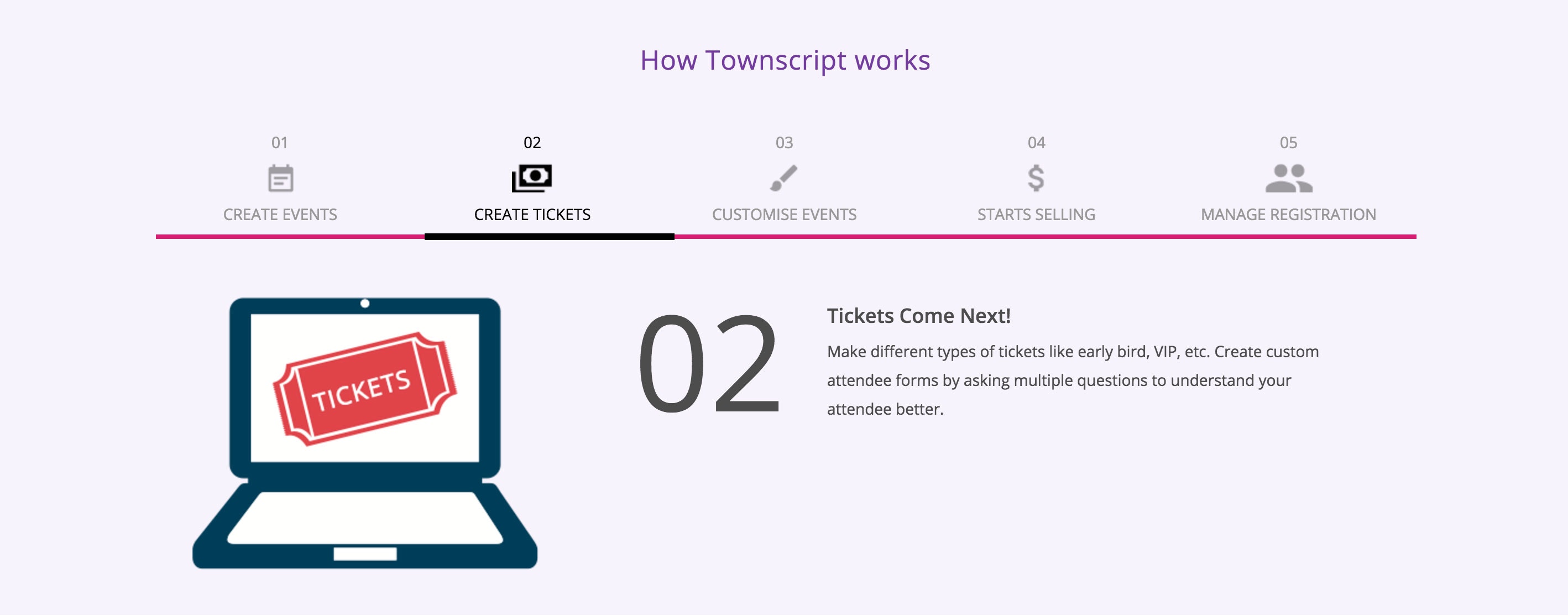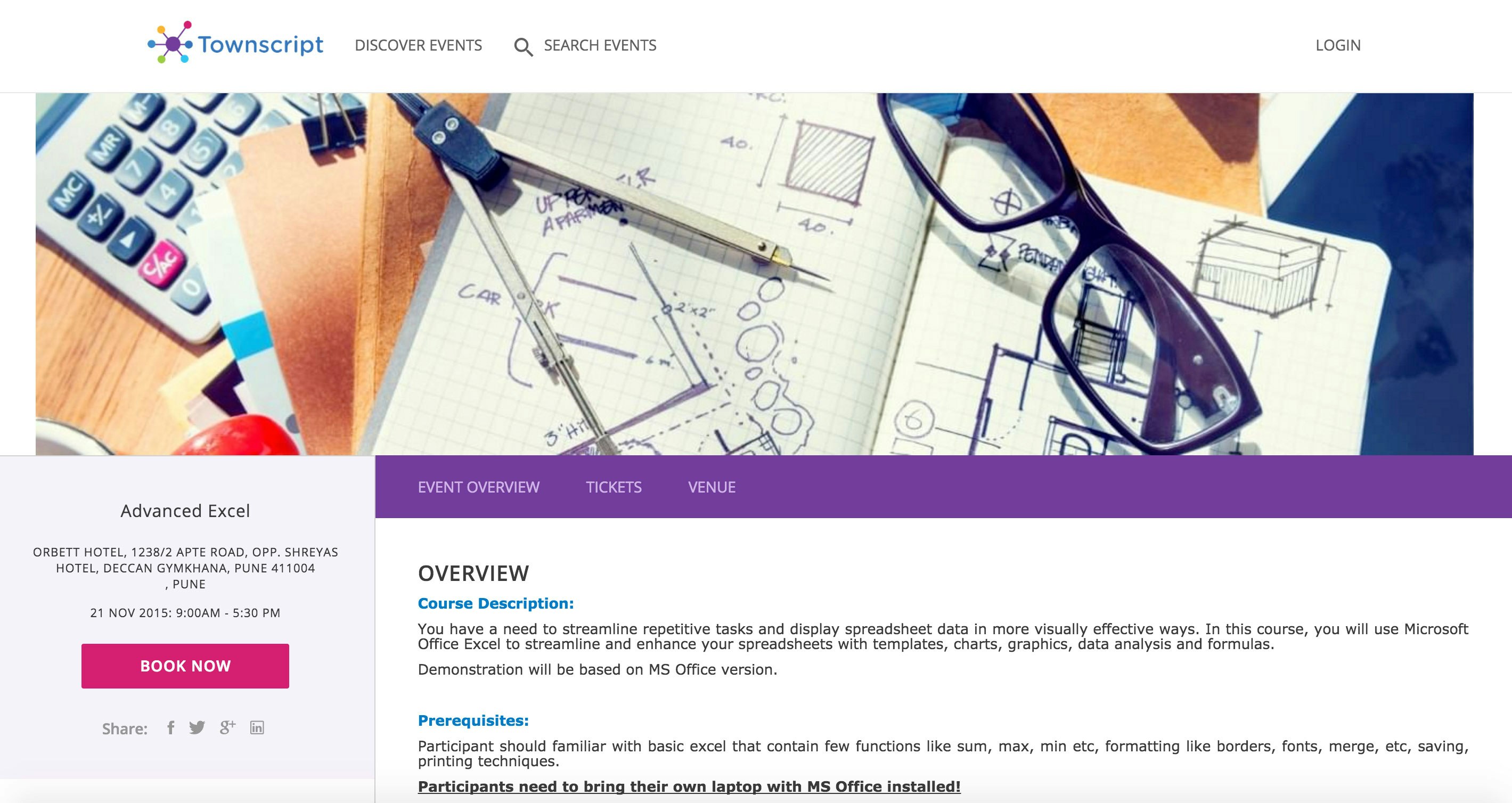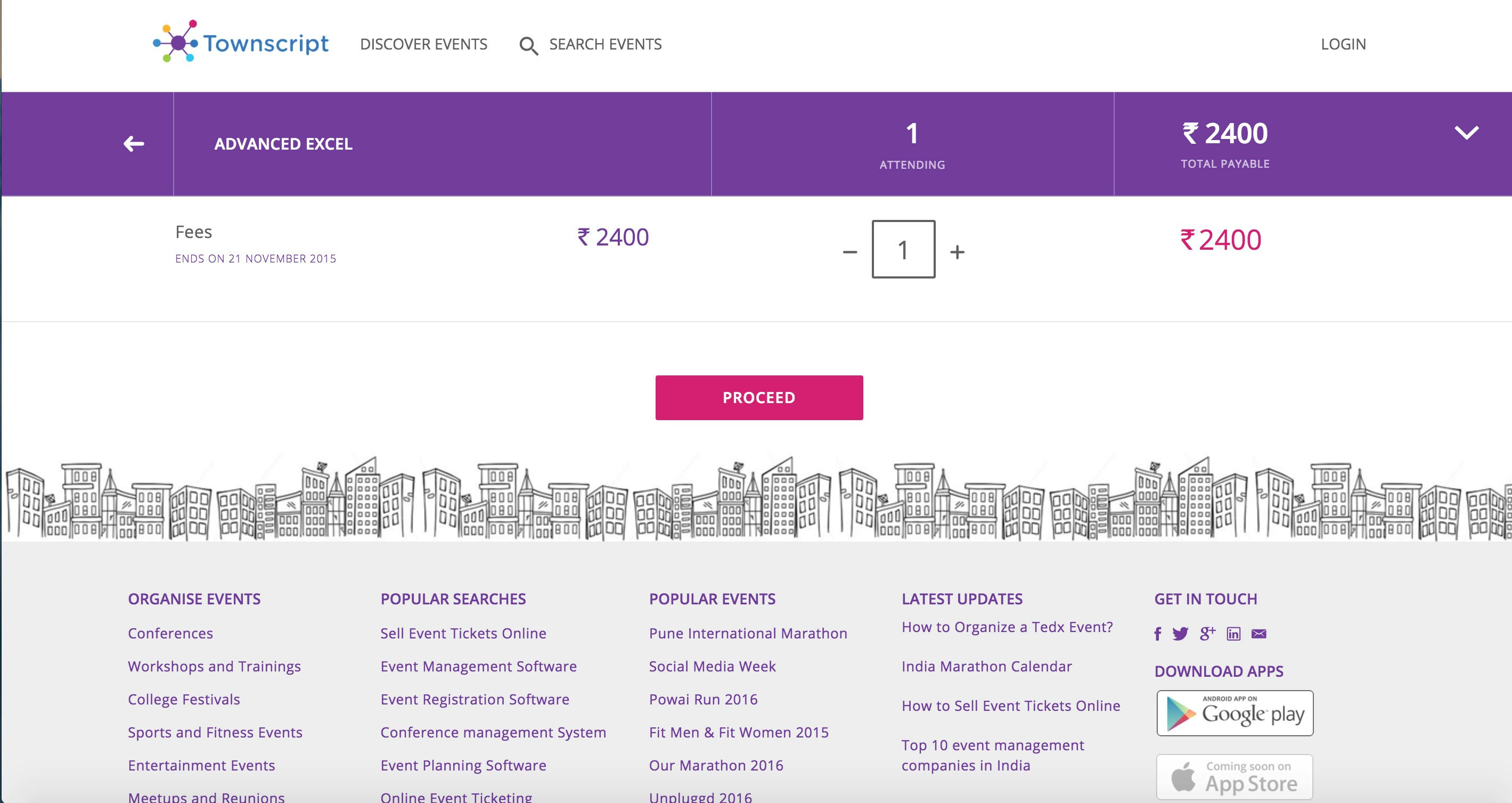 Townscript is an easy to use, self-serve event registration platform. We are constantly developing new tools & technologies to meet our vision of a more networked and connected event ecosystem. From small networking events to big conferences, Townscript is used by large variety of organisers.
