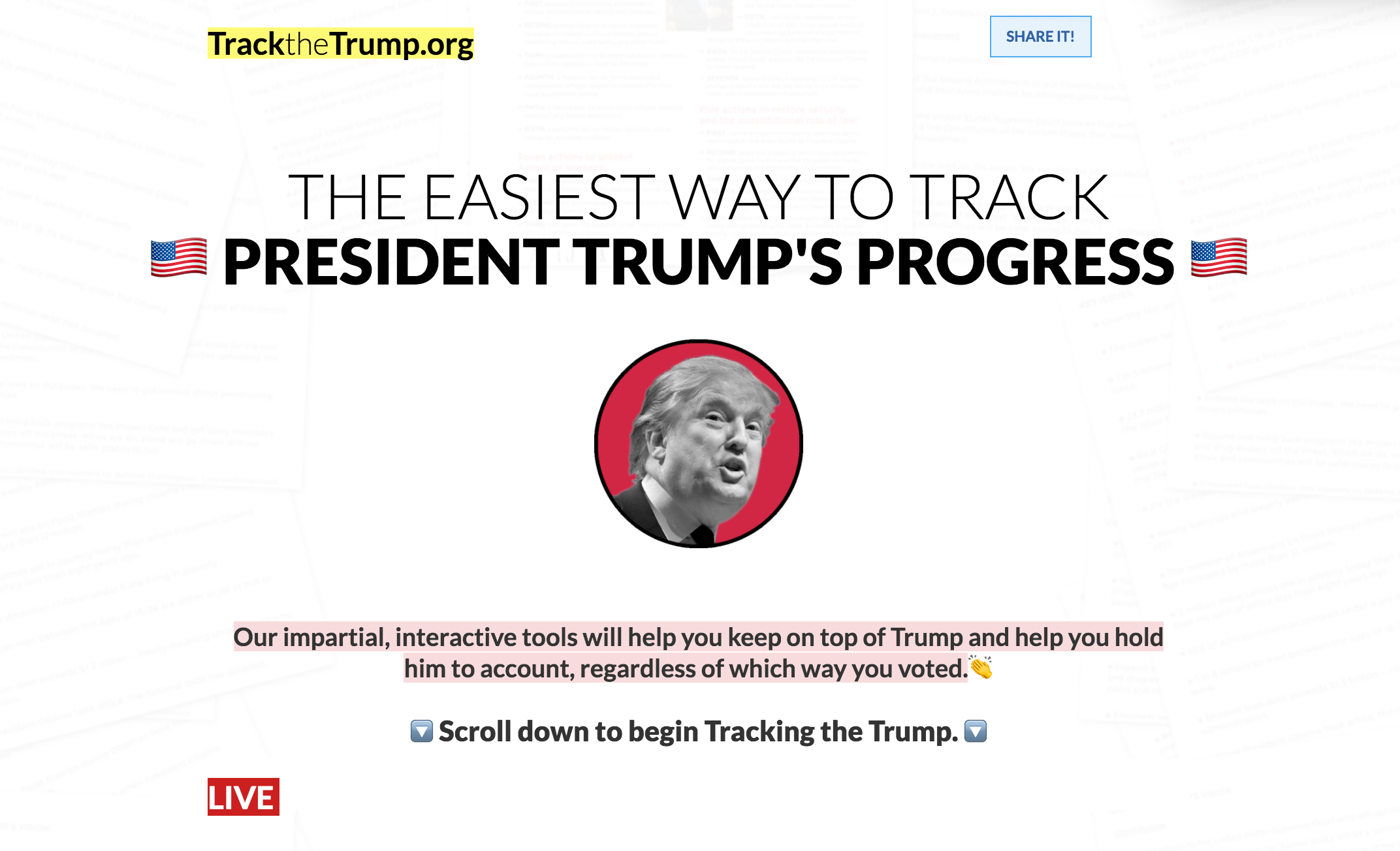 Thanks for posting this to Product Hunt Jeremy, talk about launching last minute! Trump has a lot to do... time to start the Tracking. #TracktheTrump