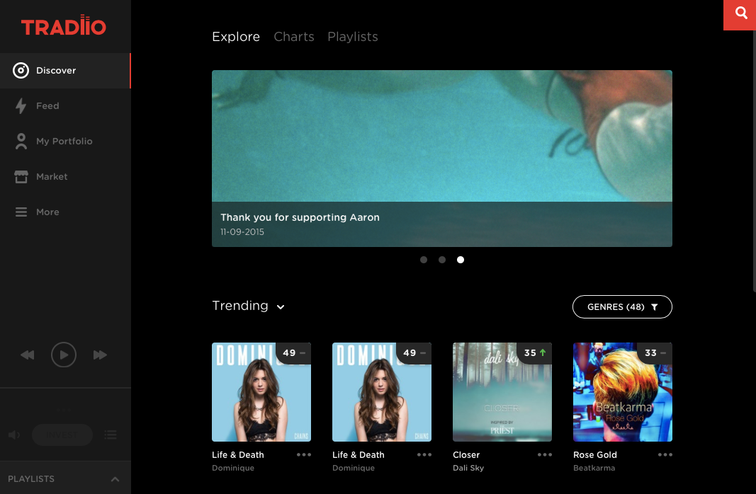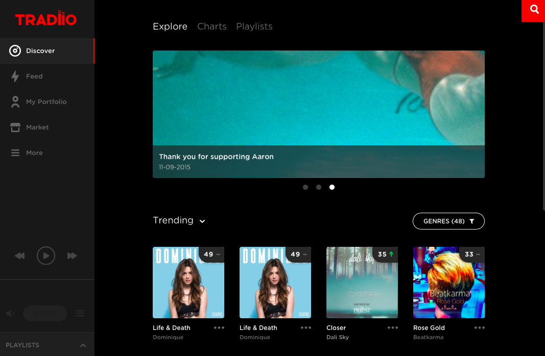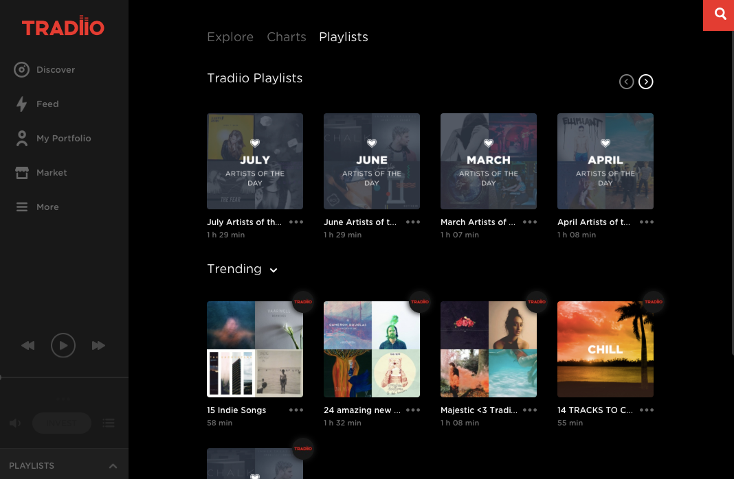 On Tradiio users scout for new music talent and help artists’ careers by virtually invest in them. We just launched officially on the UK market with rewards for both artists and users.