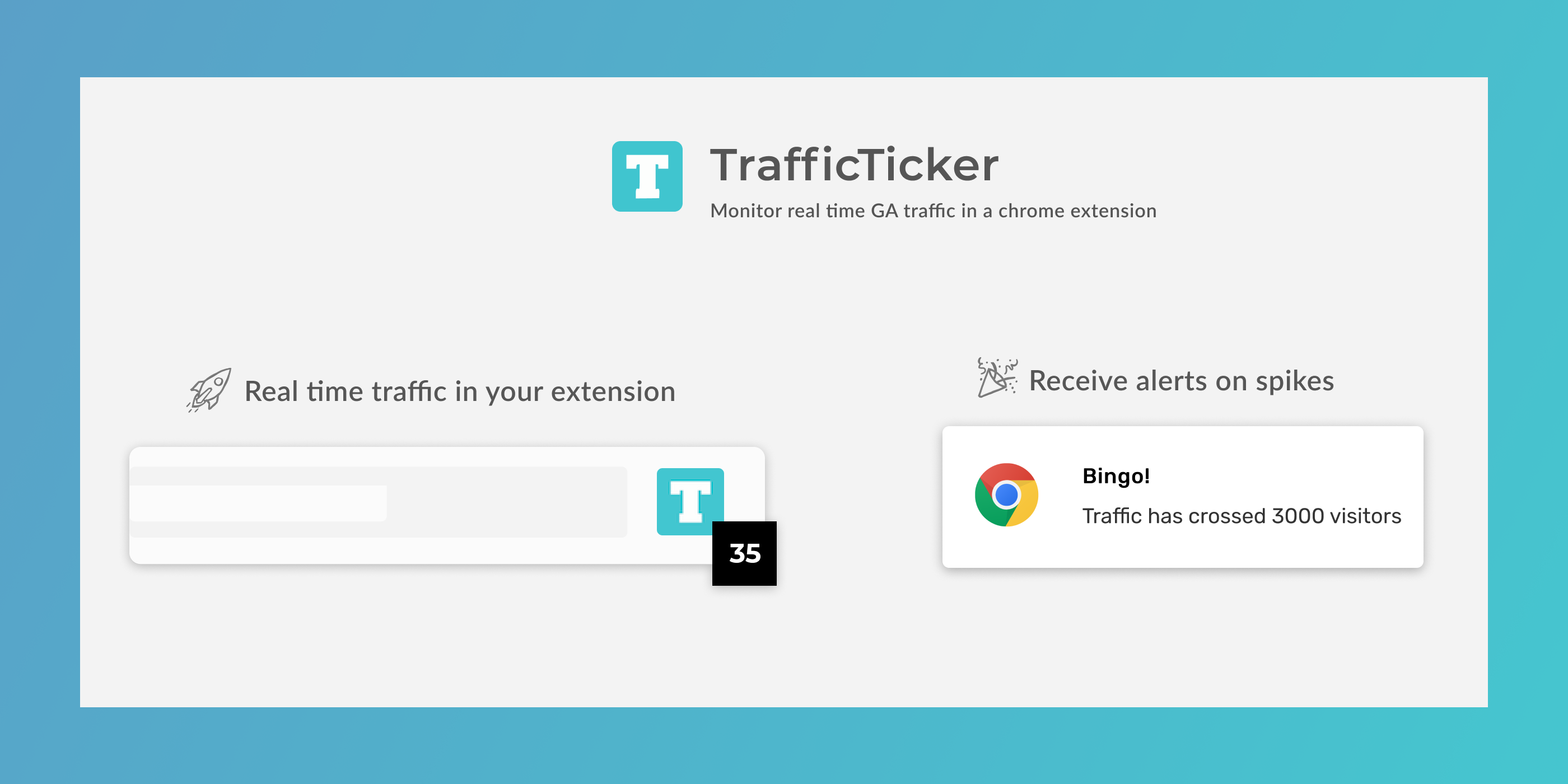 I made TrafficTicker, a simple chrome extension which integrates with Google Analytics to show you real time ticker of number of visitors at ALL TIMES right in your extension without a single click. ๐คฉ