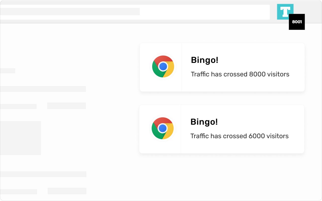 TrafficTicker is Chrome extension which integrates with your Google Analytics account to give you the total number of real time users on your website or app ๐You can also set multiple thresholds for traffic to receive alerts when it's crossed.