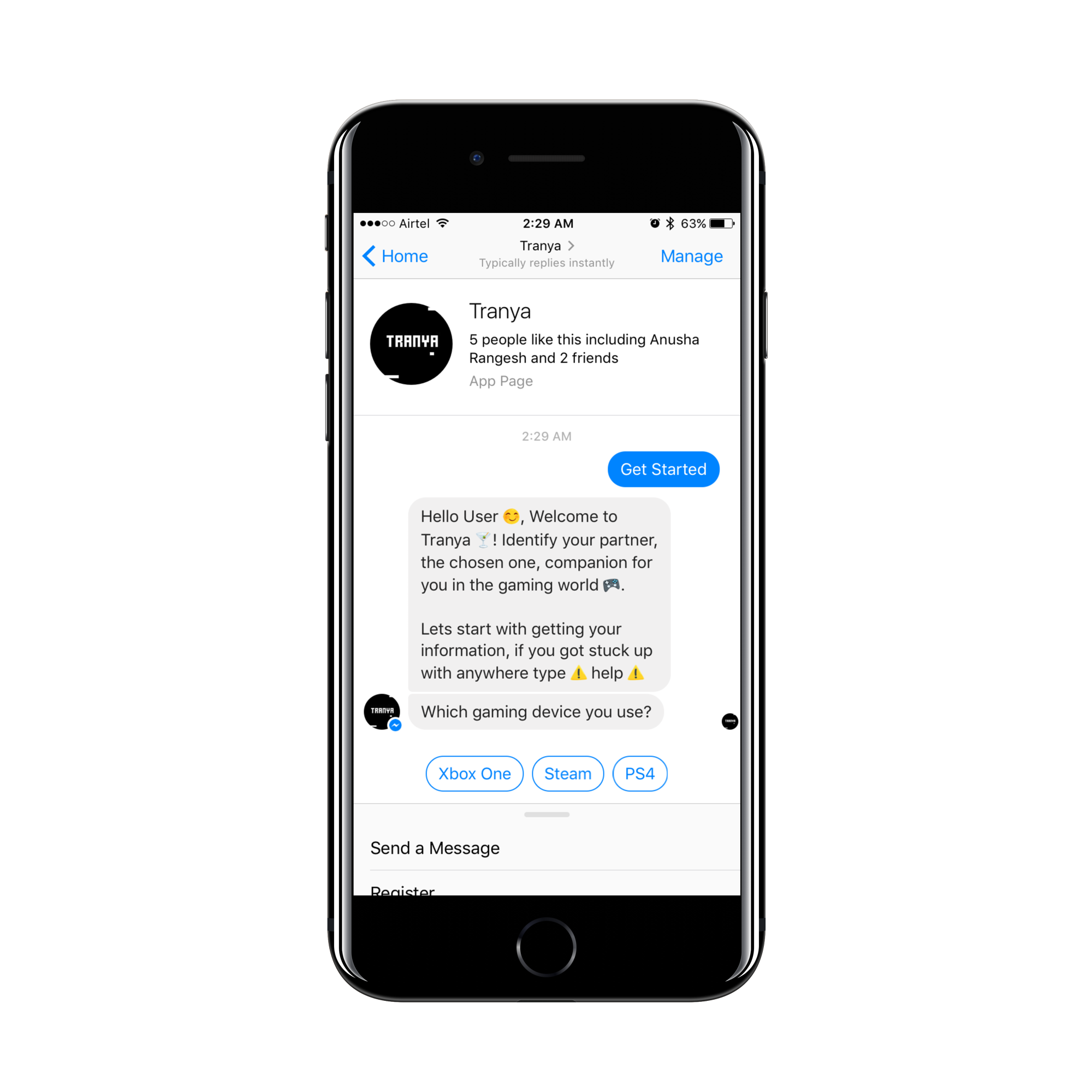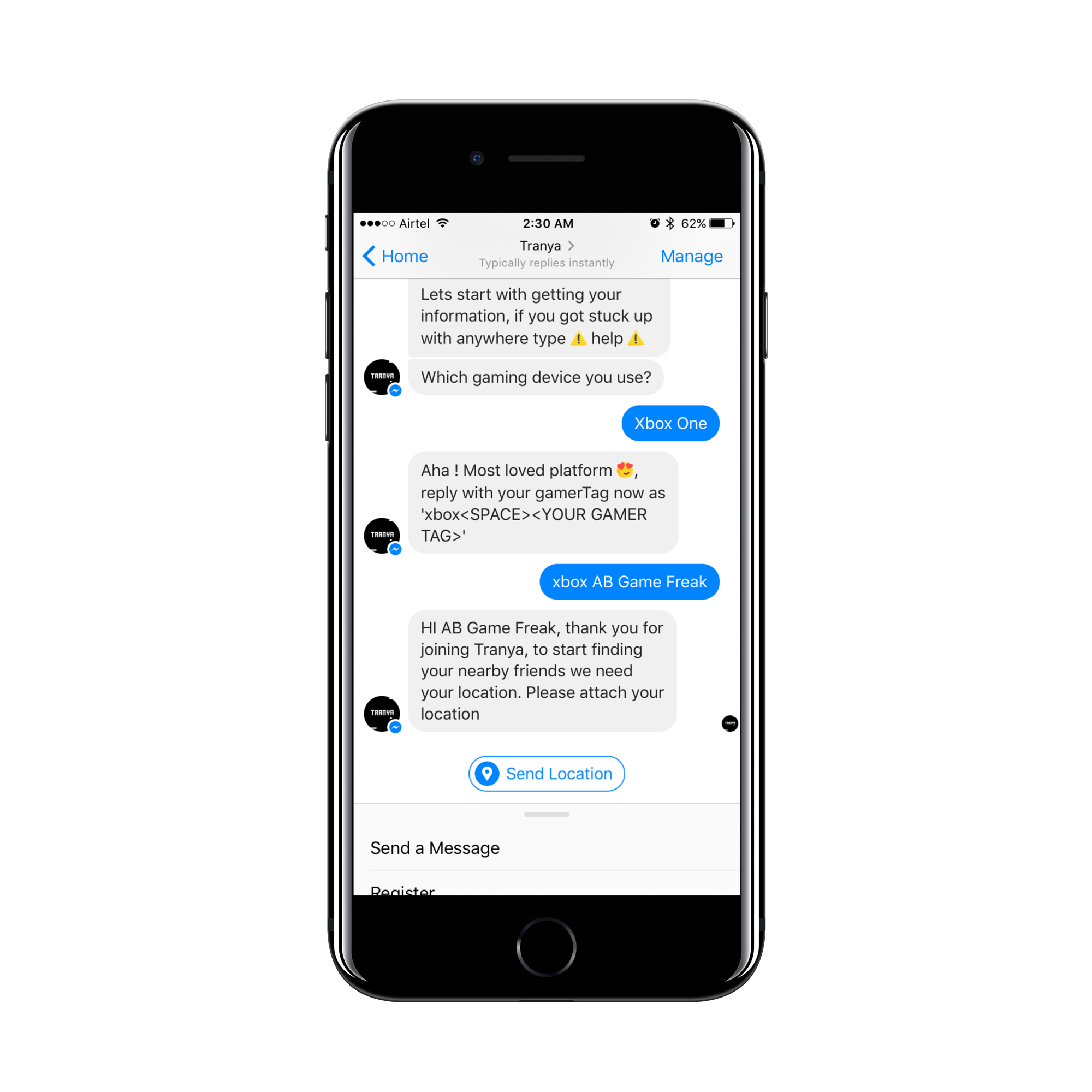 Hi, ProductHunt! This is Abraham from Tranya. Today, we're excited to announce Tranya, Messenger bot for finding nearby gamers.