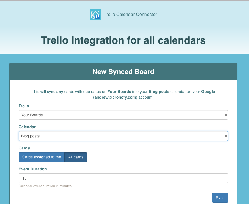 Pretty cool. Trello's native GCal integration isn't great, hopefully this works better!