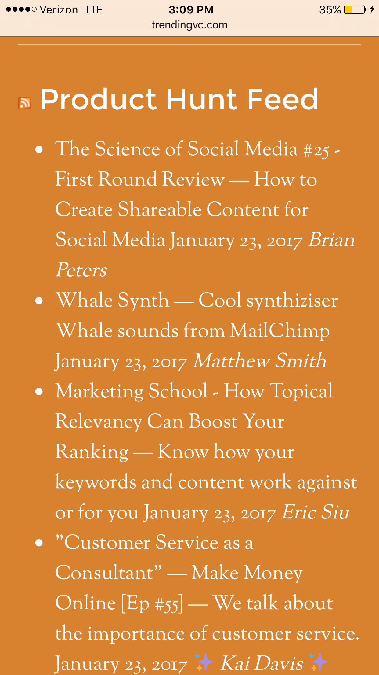 Great curation of blogs and newsletters from innovative thinkers in the startup community. Also includes @ProductHunt feed