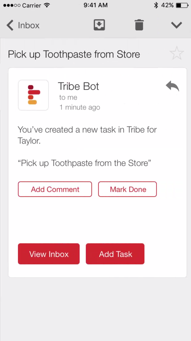 Thanks for picking this up, guys! We built Tribe because it's so tough to get other people to adopt your tool of choice. With Tribe, you can task anyone with an email and they can respond without ever signing up.