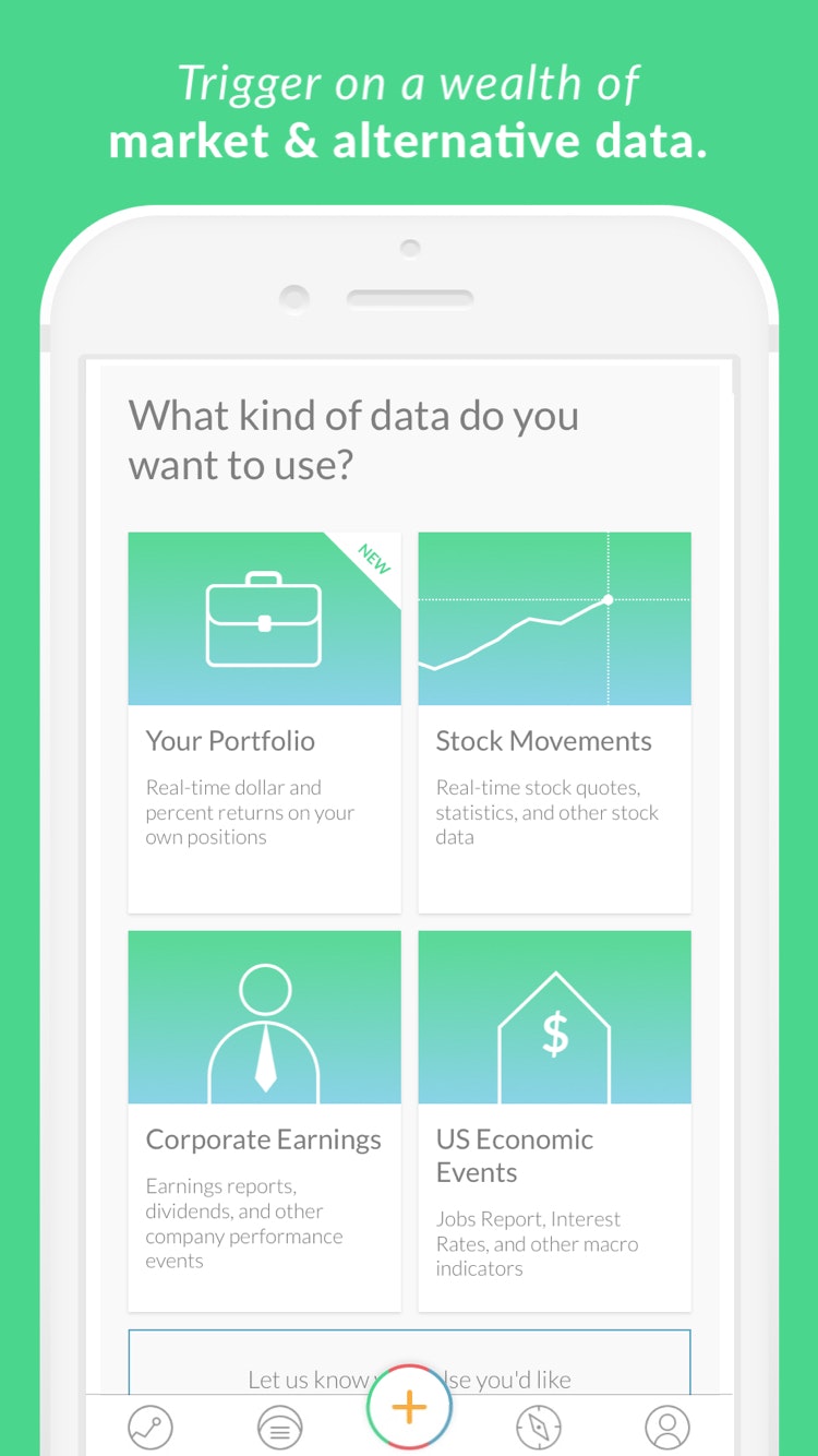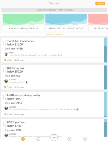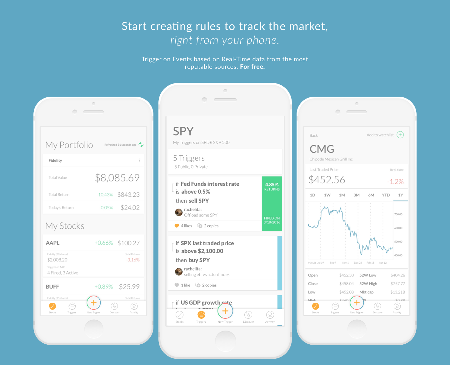 Trigger is simplifying the world of stock investing by reducing everything to an “IF THIS, THEN THAT” statement, called a ‘trigger’. You can create triggers to track all sorts of things happening in the market -- for example, if a stock drops suddenly, or… See more