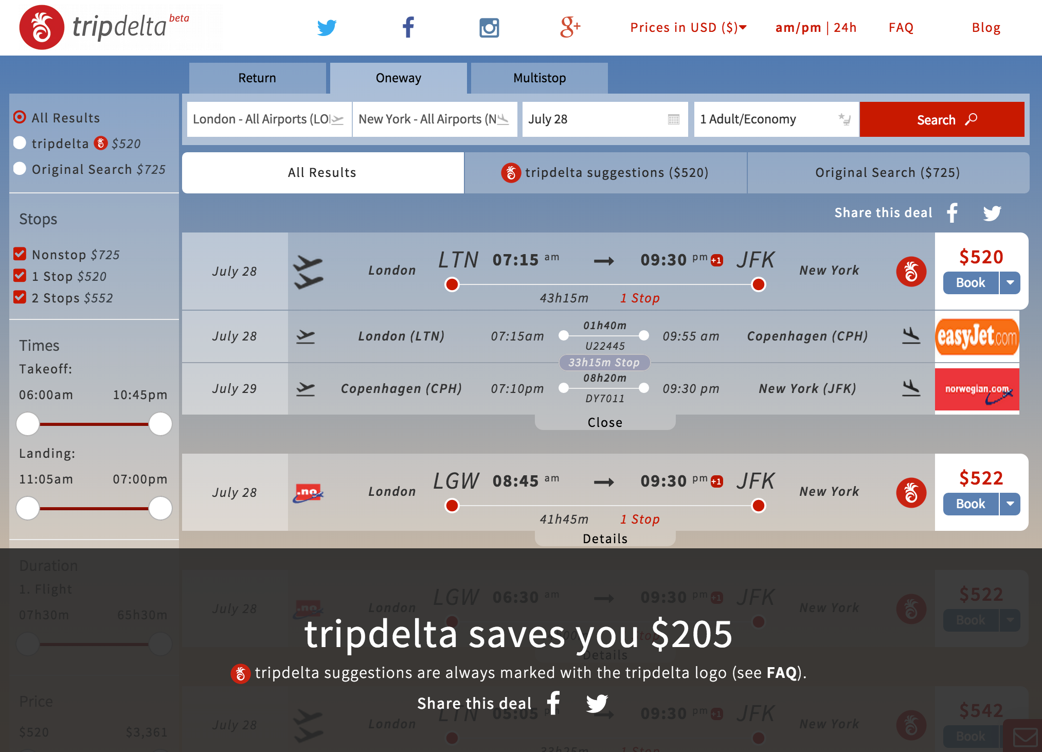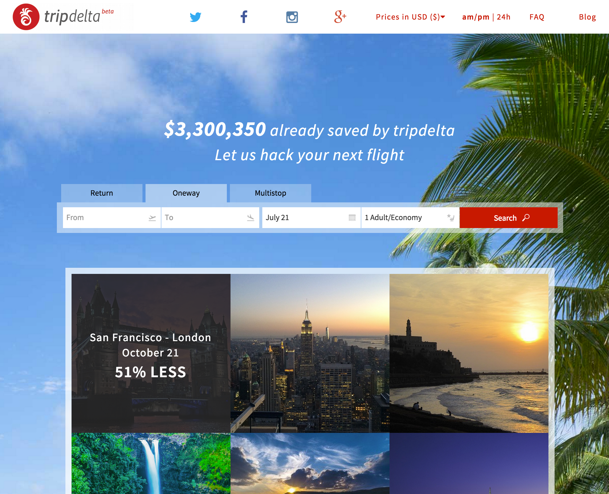 I am one of the co-founders of tripdelta. We’ve been working on it for a couple of months now. We are real travel maniacs and traveled to more than 100 countries combined in the last years. Finding flights is frustrating.