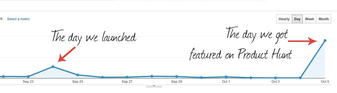 All - I wanted to send a quick "thank you" to everyone who upvoted us and commented on this page yesterday. Of the hundreds of products that get submitted everyday, only 10 or so get featured on the front page. Check out the time graph above to see the effect this had for us.
