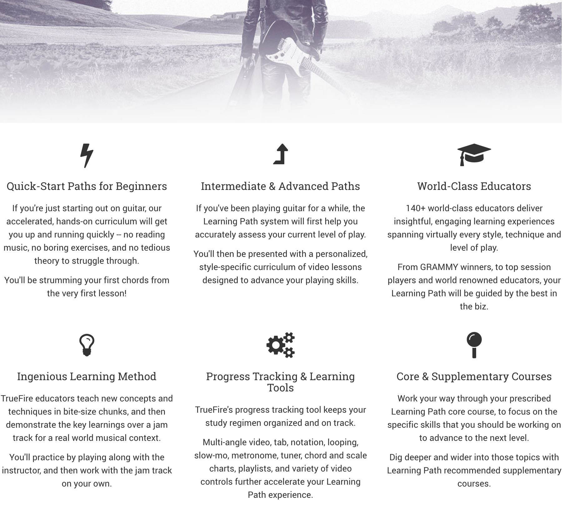Whether you're a beginner, intermediate or advanced guitar player, TrueFire's Learning Paths will take your playing to the next level with an accelerated, hands-on study plan.