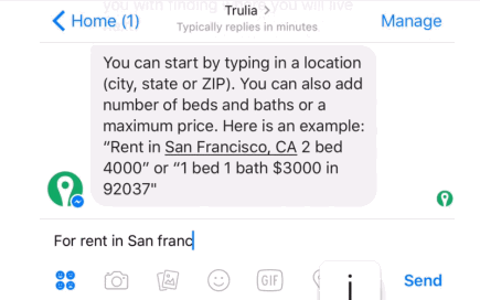 If Trulia feels the need to hop onto the Messenger Bot train, I'd prefer a friendlier step-by-step chat process with the option to vi… See more