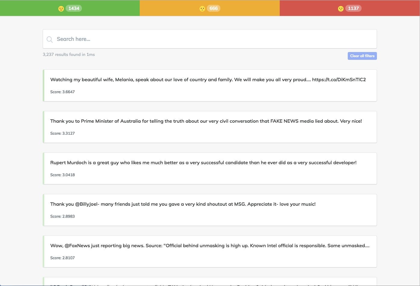 Sentiment analysis, Algolia, Trump's tweets