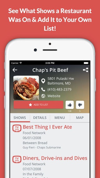 Cool app and website where you can find the restaurants from your favorite foodie shows.