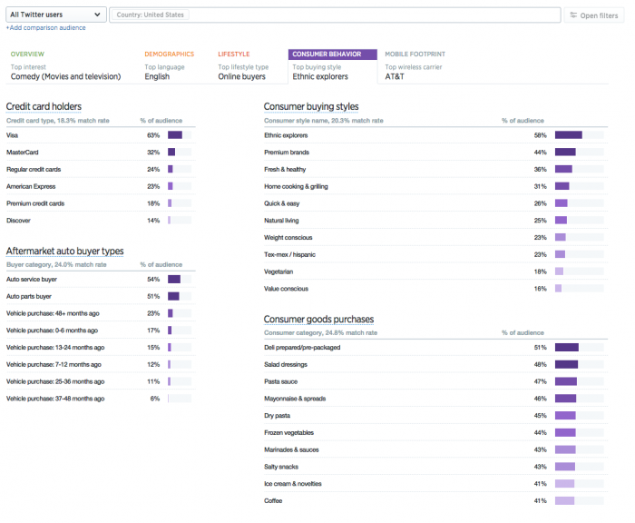 Audience insights is now available to all Twitter advertisers and analytics users. Twitter-specific information can be accessed within the U.S., with plans to roll this out more broadly over the next few months. To get started, login to ads.twitter.com and select ‘Audience Insights’ from the … See more
