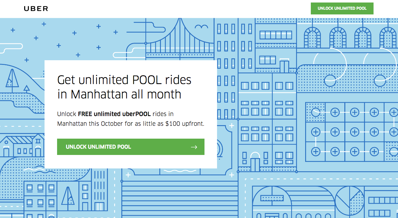 Unlimited Uber Rides Subscription in NY: $100/2w & $200/4w