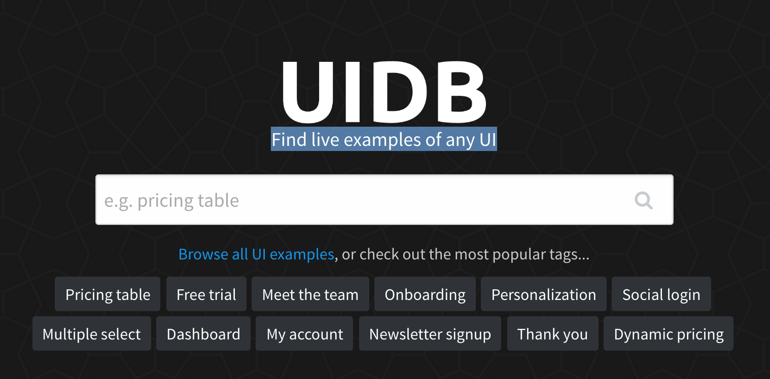 Quickly find any type of UI example for design inspiration.