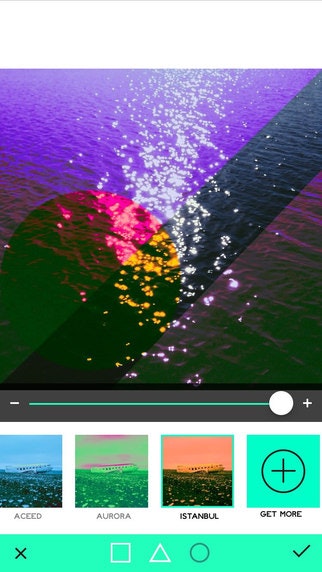 The app has a generous collection of colorful, a tad psychedelic filters and a few geometric shapes allowing users to come up with really spectacular edits.