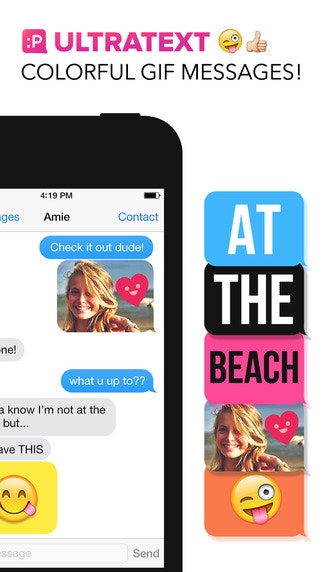 The type-to-create interface is ideal to quickly send fun and colorful messages to friends/family. You can also easily add photos to the GIF message as well.