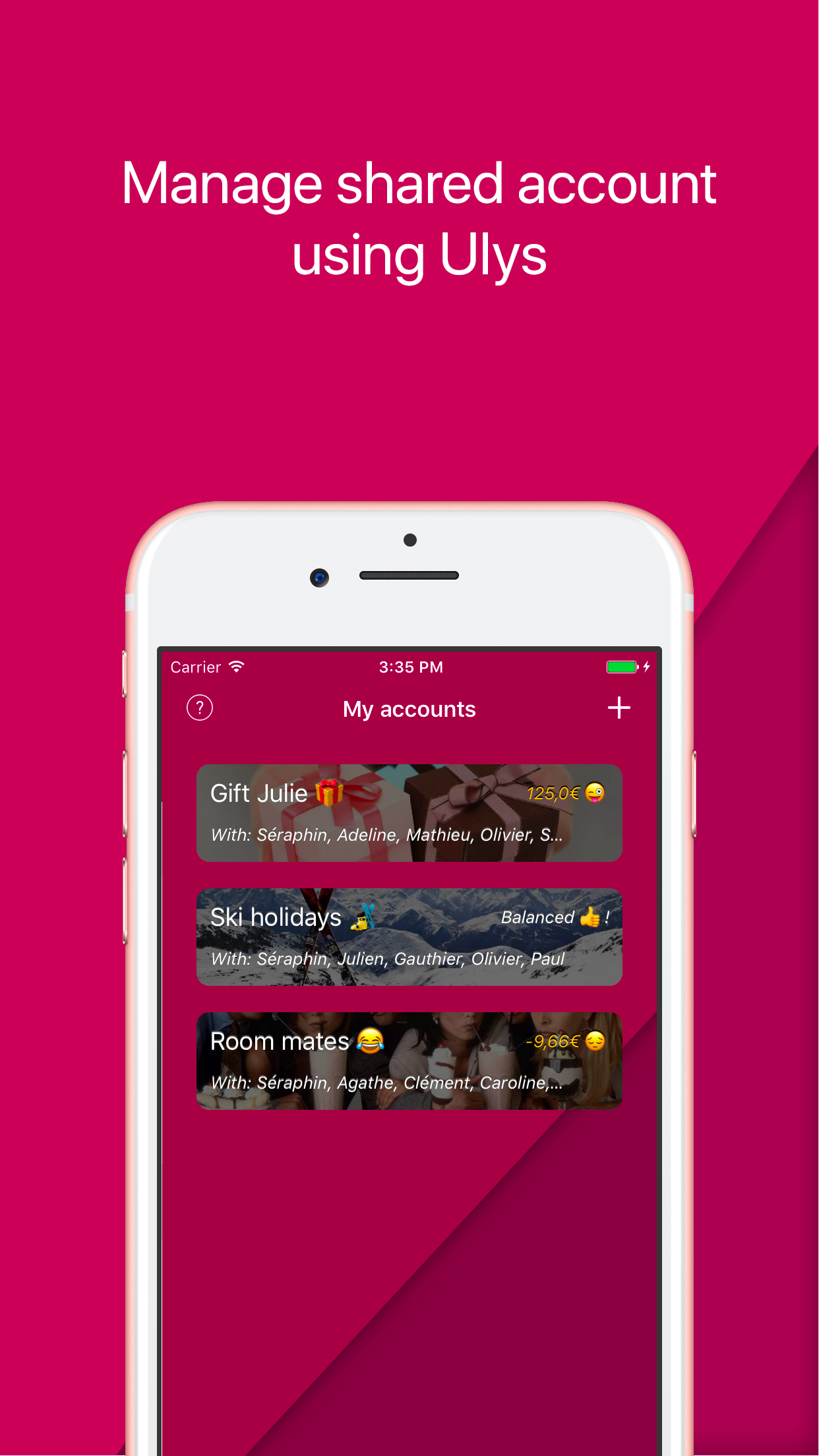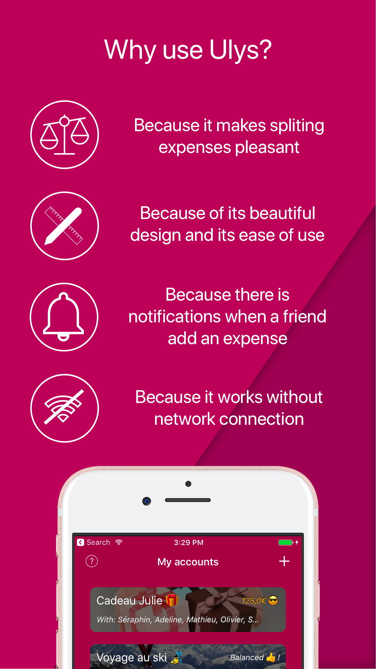 We're super excited and happy to present you Ulys! Ulys is the new mobile application to make your expenses between your friends easier.