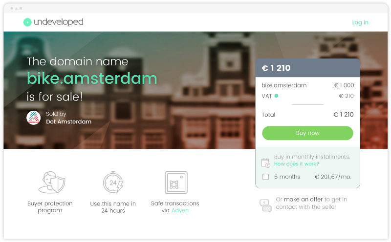 Undeveloped enables people to sell the domain they don't use. The price is what you decide. All the hassle of payment, escrow of the transaction, and change of ownership is 100% on our side. This way we guarantee you can NEVER get scammed. We also pioneered the industry with financing options if you prefer to pay monthly. That's something we'll do more of soon with the introduction of rent.