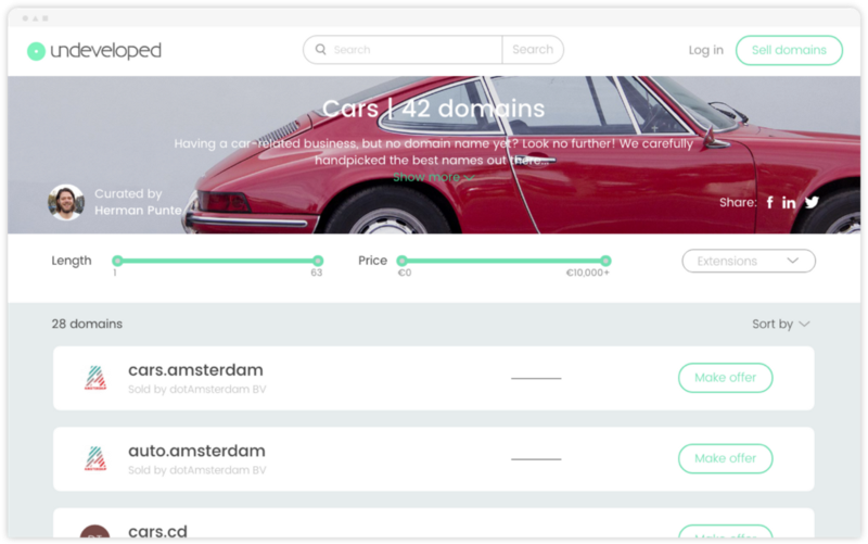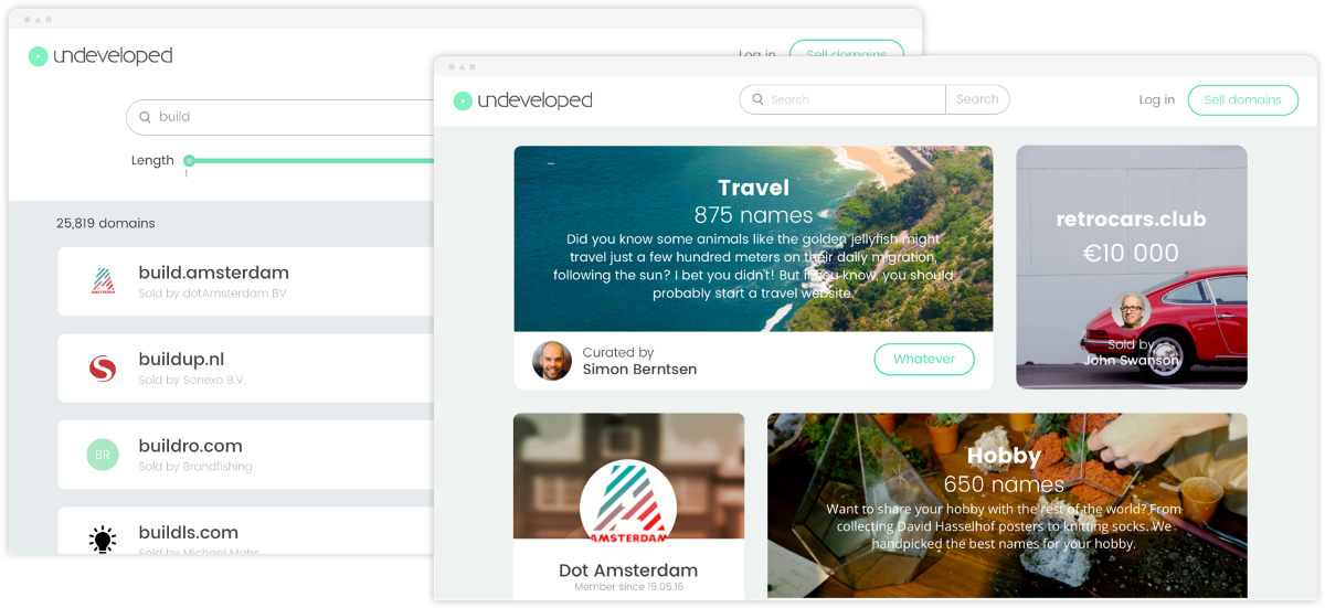 That's why we've started centralising the market. By making all available domains, which are currently scattered all over the internet, accessible both on Undeveloped but also directly on partner sites like registrars through our API. We want to make the whole experience of entrepreneurs finding and acquiring the right name painless, swift and easy.