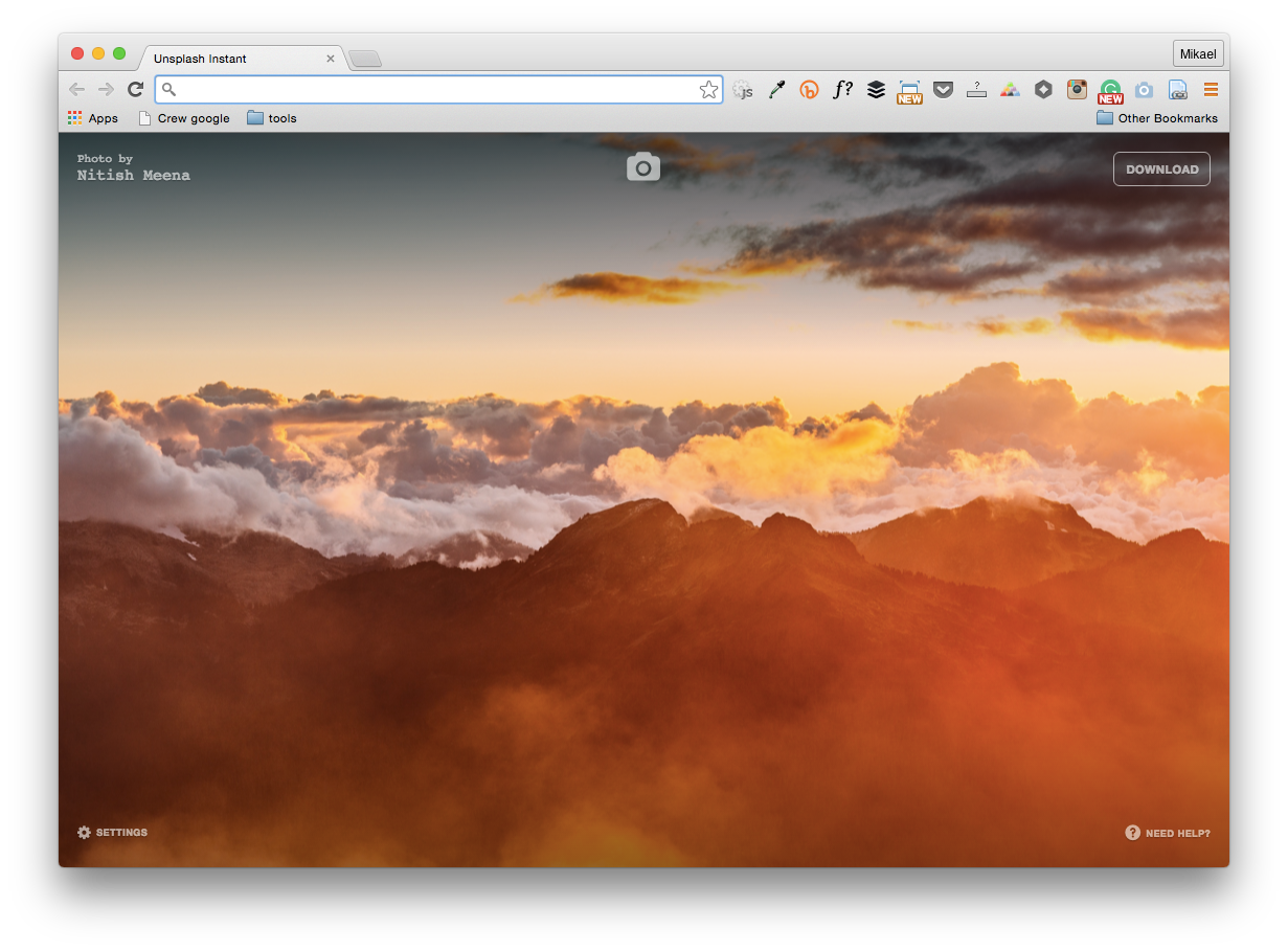 I've been using Momentum because of its gorgeous, full-width daily photos. I like that Unplash Instant shows a new photo each time you open a new tab (not daily) and gives you the option to download instantly.