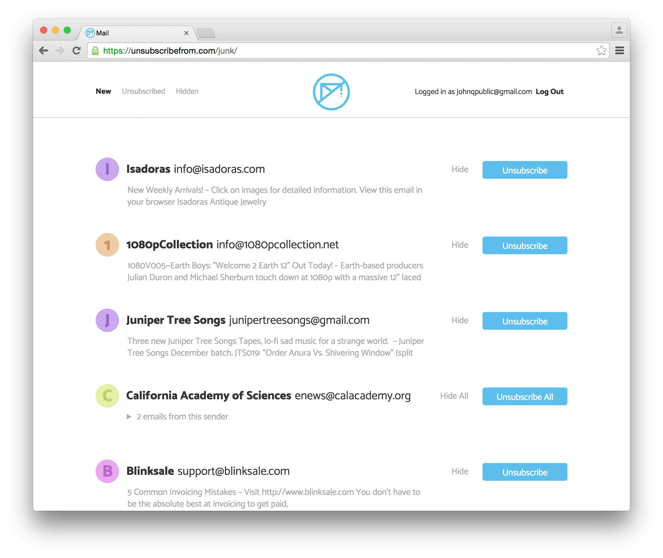 I try a lot of products. Email marketing started taking over my inbox, to the point where I made a Gmail filter that sent anything with the word "Unsubscribe" in it straight to the archive. The OCD in me wanted to put an end to the junk. @steadicat, @brownthings, and I built this to to help.