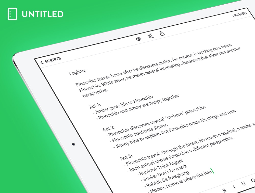 Untitled is the Evernote for screenwriting. A notebook tailored specially for screenwriters, that turns notes into scenes with the tap of a button. Literally.