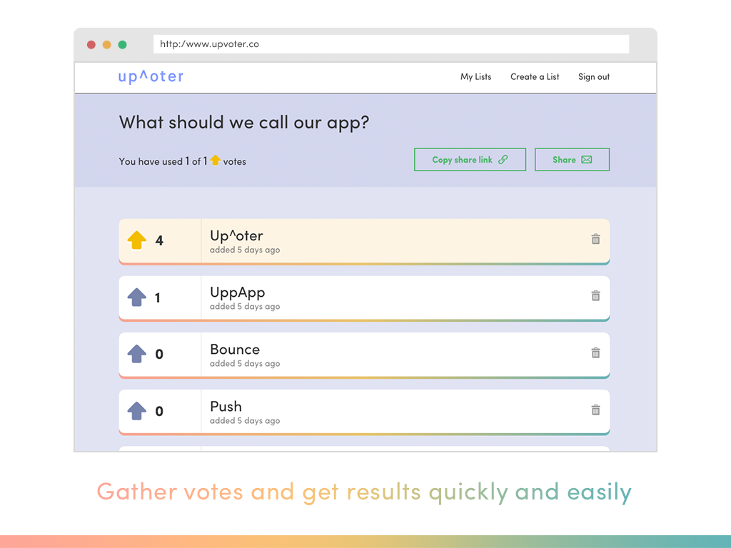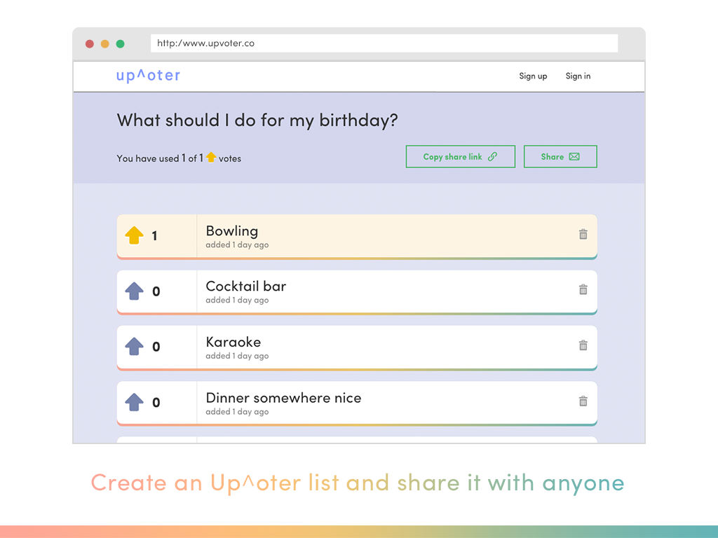 We’d like to introduce Up^oter - the quick and easy way to make group decisions with anyone about anything.