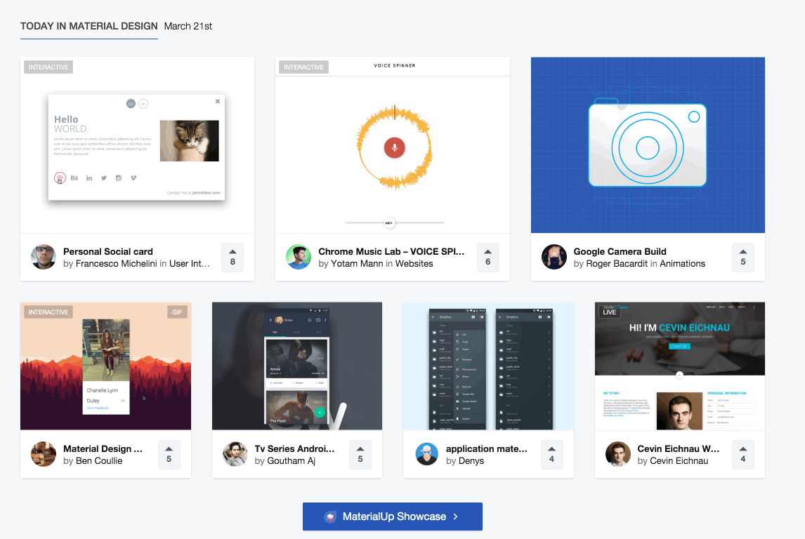 I was being inspired by MaterialUp while I was designing a material android app. It's nice to have a 'Material Design' showcase somewhere.