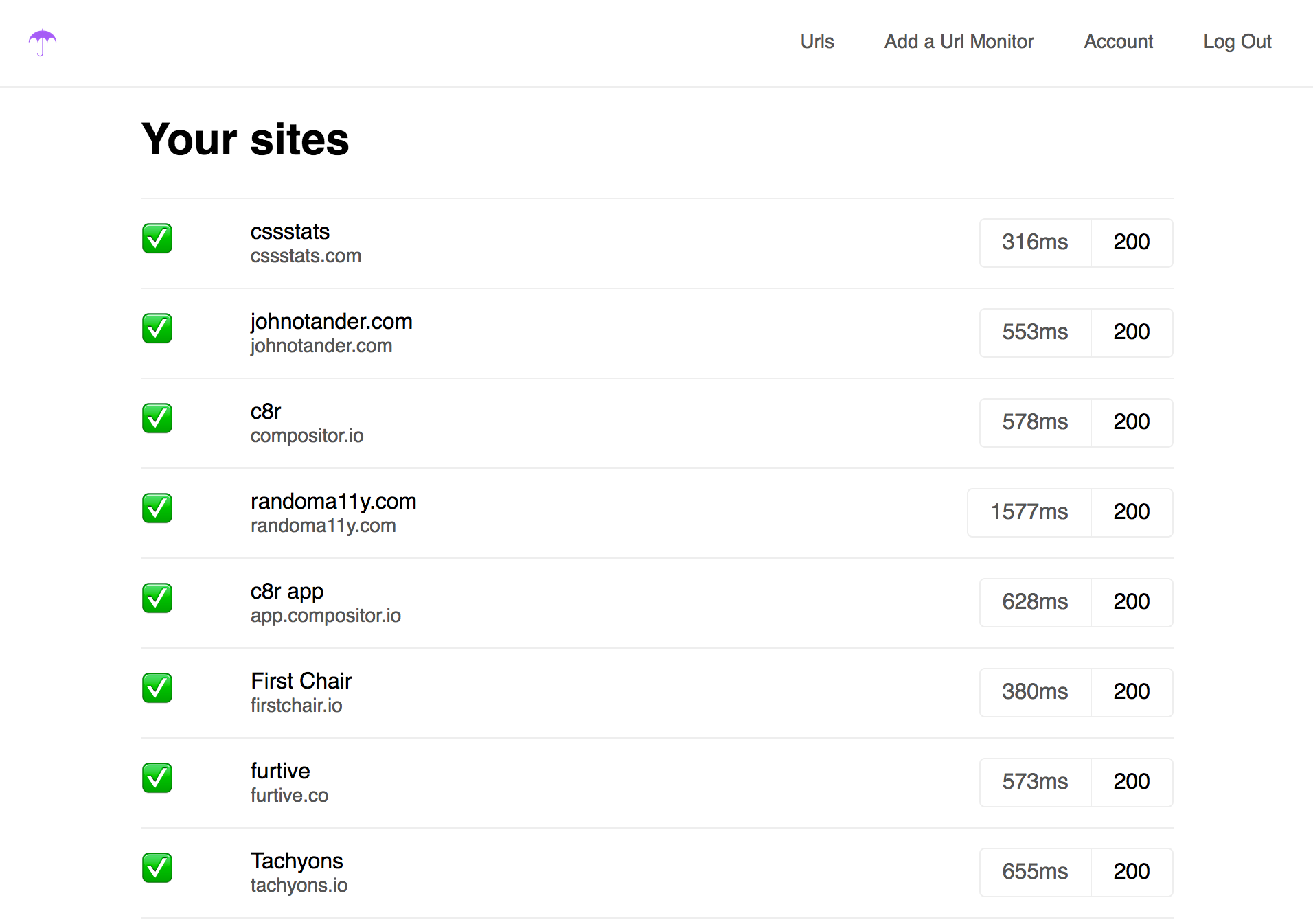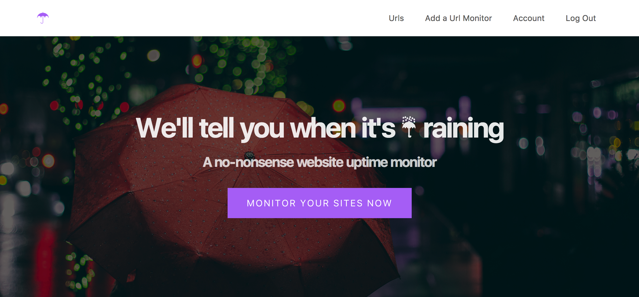 We wanted an uptime monitoring service that focused more on simplicity than adding features. With Uptime Umbrella, you put in a website url and we send you an SMS — for $1 a month per url.