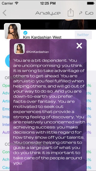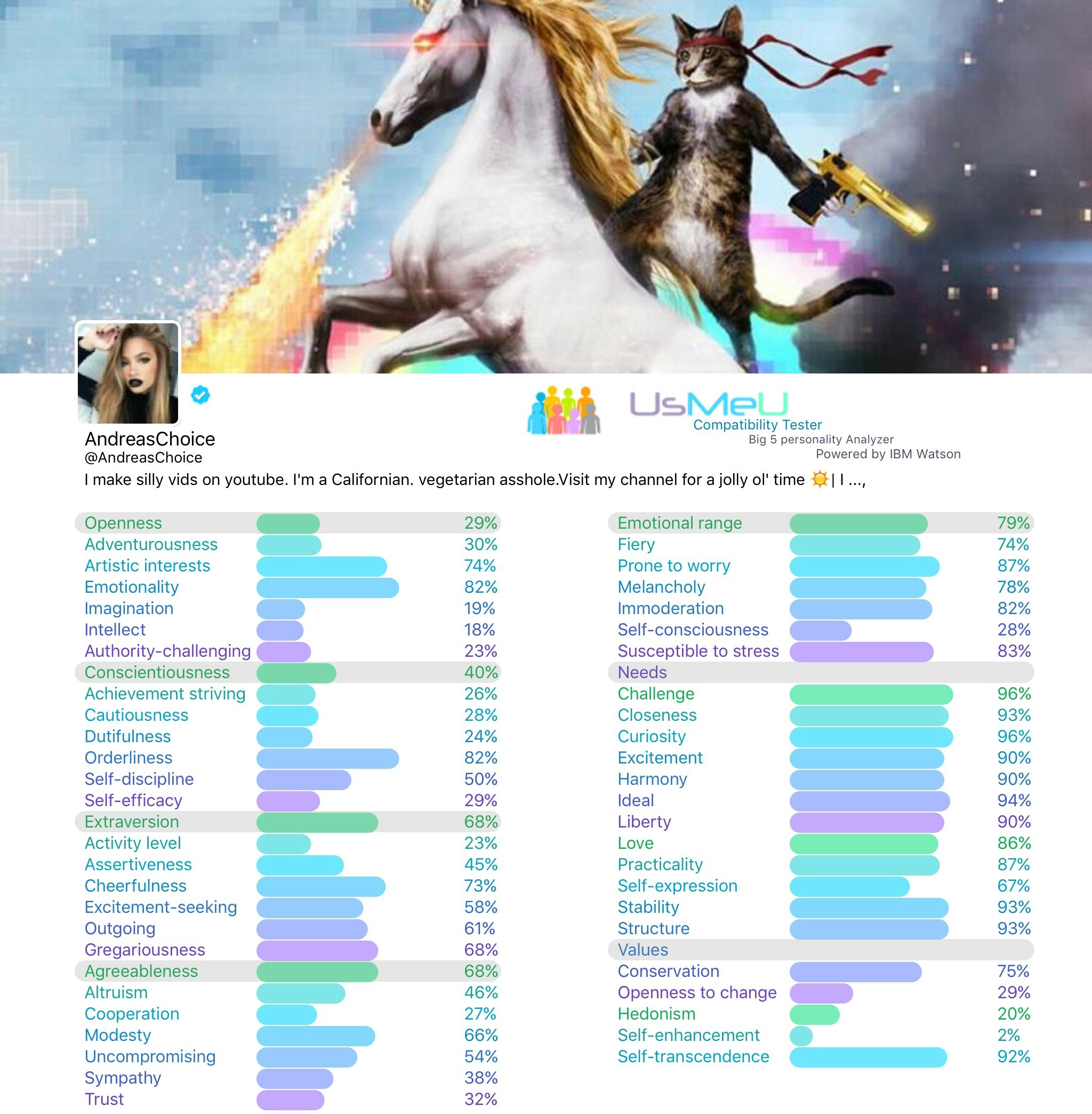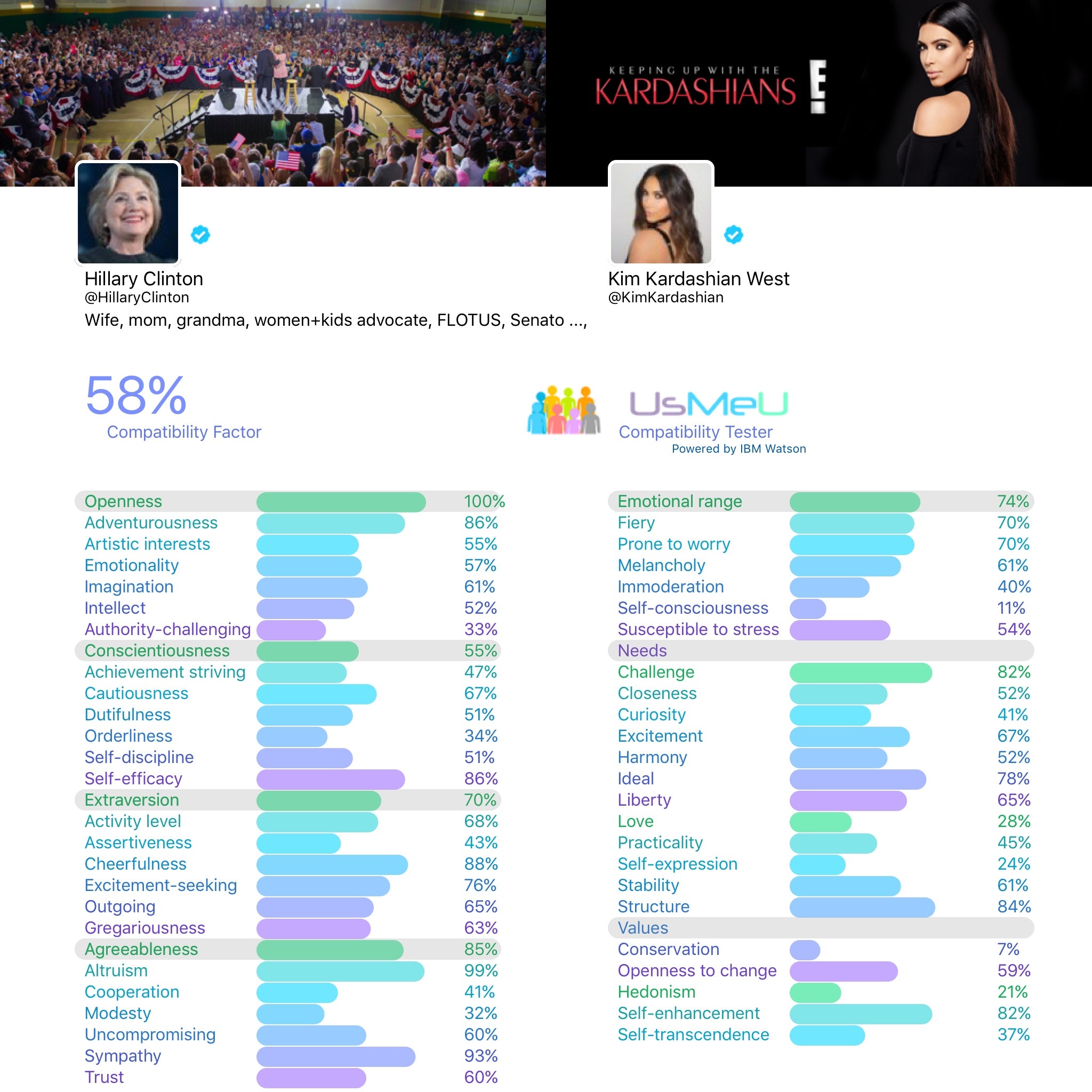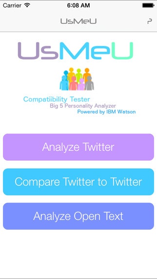 UsMeU uses a IBM Watson service, Personality Insights, You can search for a Twitter user and send that person's last 200 tweets to Watson to analyze.
