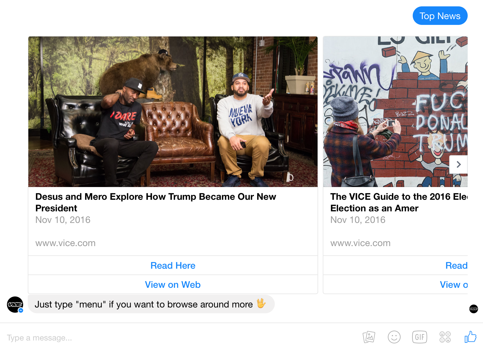 Stay tuned with news thanks to Vice Bot for Messenger