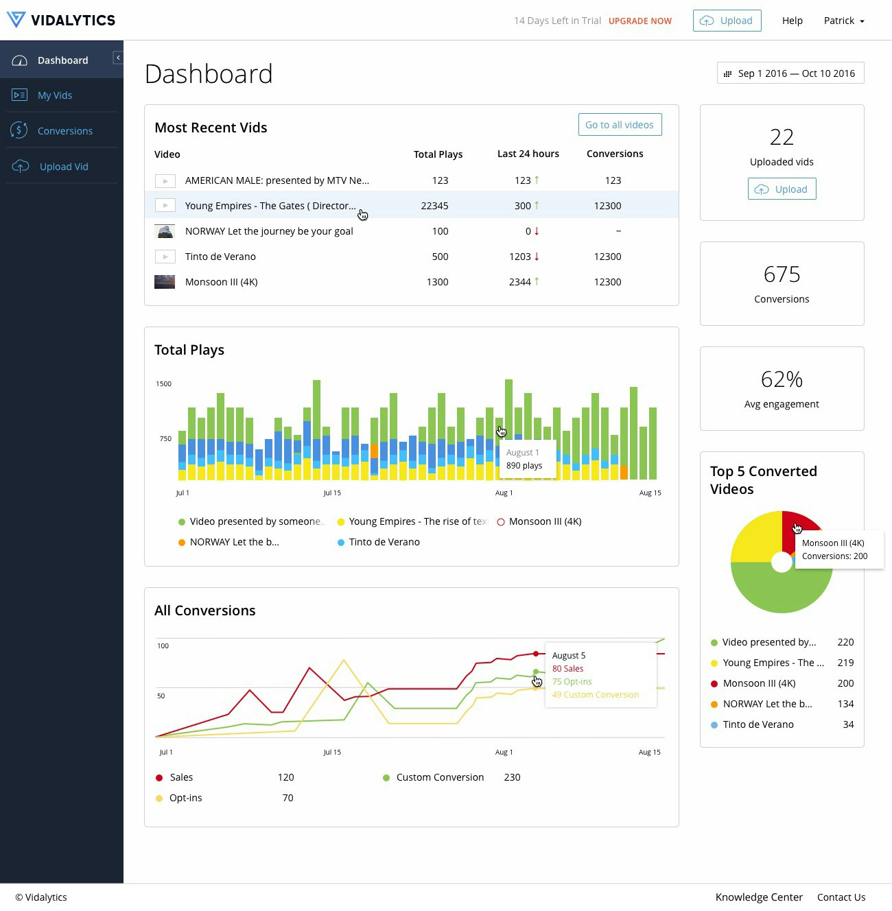 First end to end video platform conceived exclusively for marketers. Our Exclusive Video Conversion Analytics show you what messages in your videos make people buy — so you can easily make any video convert :)
