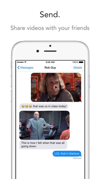 We were always looking for ways to send our favorite parts of movies to our friends. Eventually we realized that there was a better way to send any video content in general as a means of communication. More to come in our next update.
