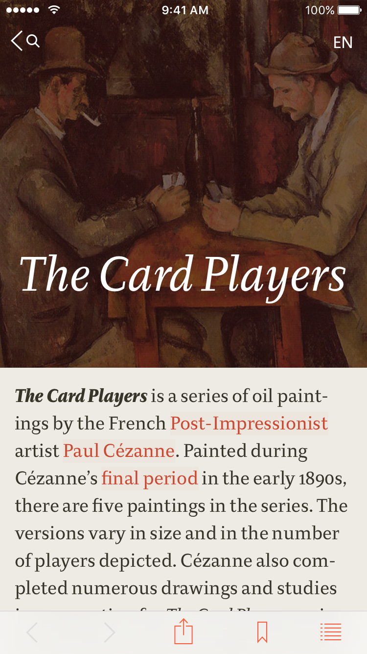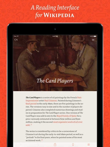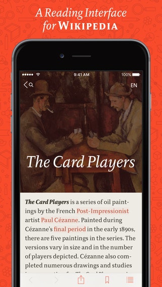 This is a beautiful designed work of art on iDevices. Pure pleasure to read. BTW — you can read all of Wikipedia in it.