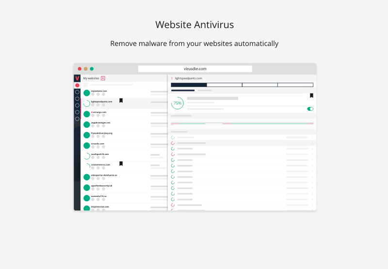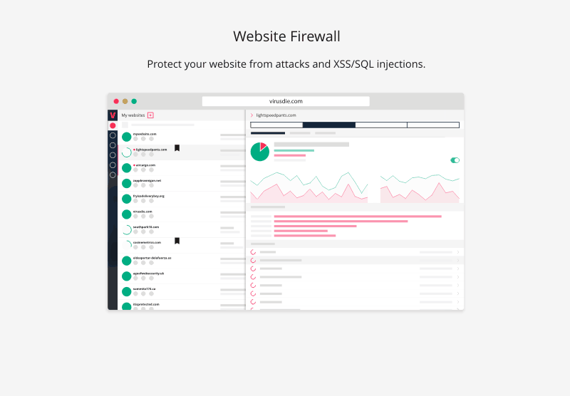 Virusdie is All-in-One simple, powerful and gorgeous website security tools built for everyone. It helps you clean your websites from malware automatically. Shows malicious code in files. Protects your websites from online threats and XSS/SQL injections. Mitigate DoS attacks and suspicious activities on your websites.