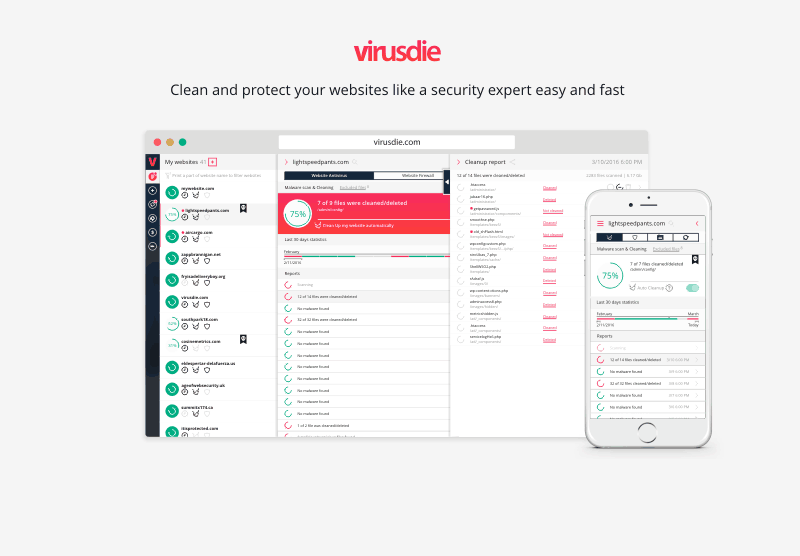 We created Virusdie as a complete Website Security platform to help webmasters, security experts, SEO experts and regular website owners rehab and keep their projects healthy.