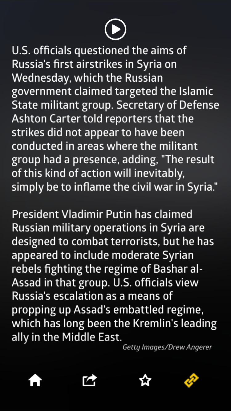 Great news summaries...very evocative of Summly (acquired by yahoo)...great way to consume news. the image tinkering is annoying - turn it black/white then dashing color.