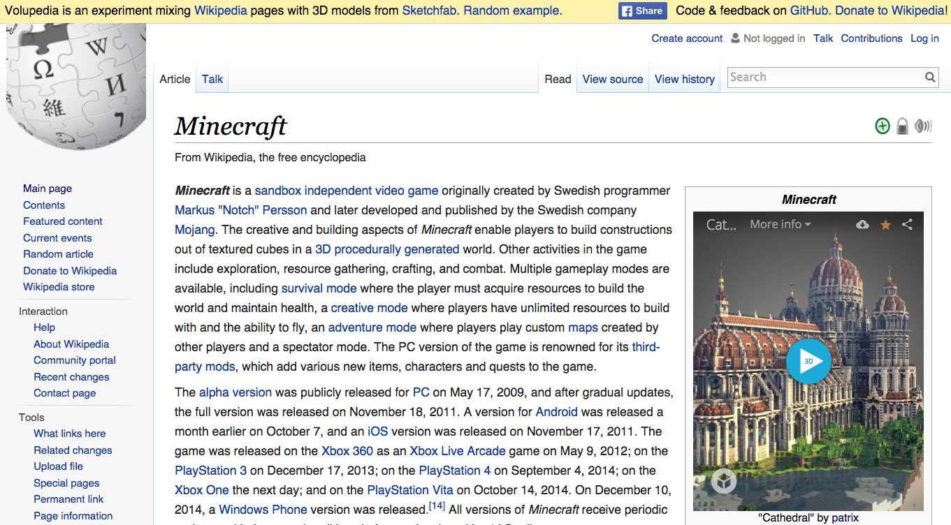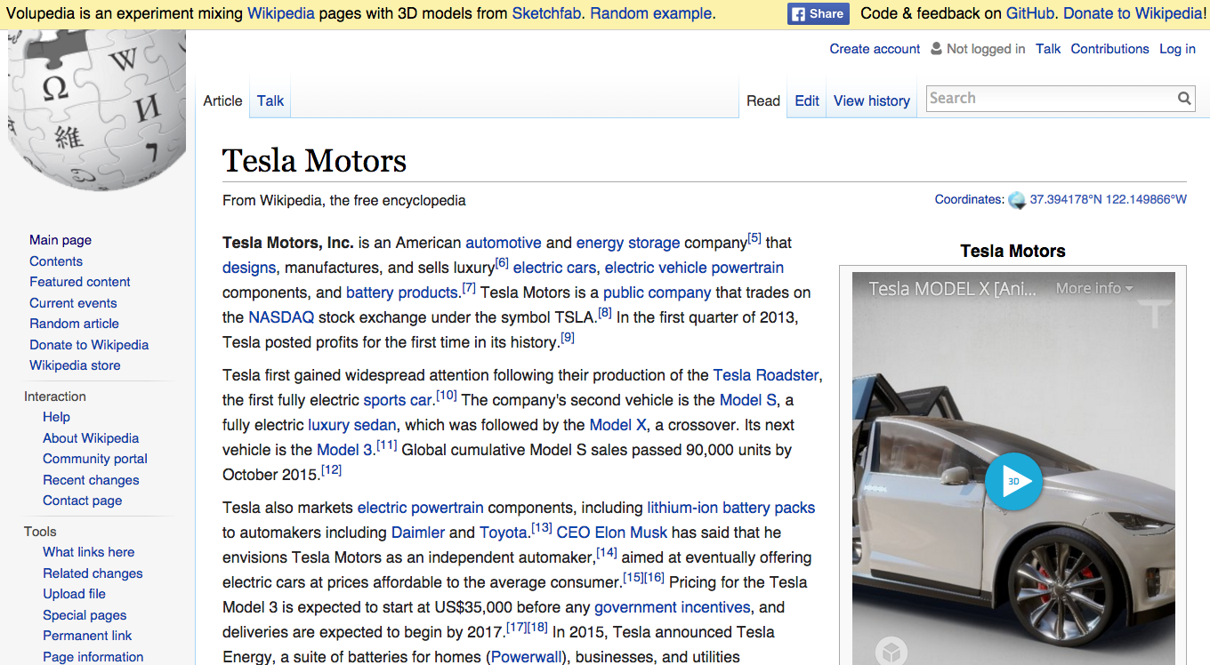 Great mirror site! When I clicked on Volupedia I was eager to check out my first augmented wikipedia entry. How do you plan to help visitors know which entries have 3D embeds aside the “Random” link at the top?