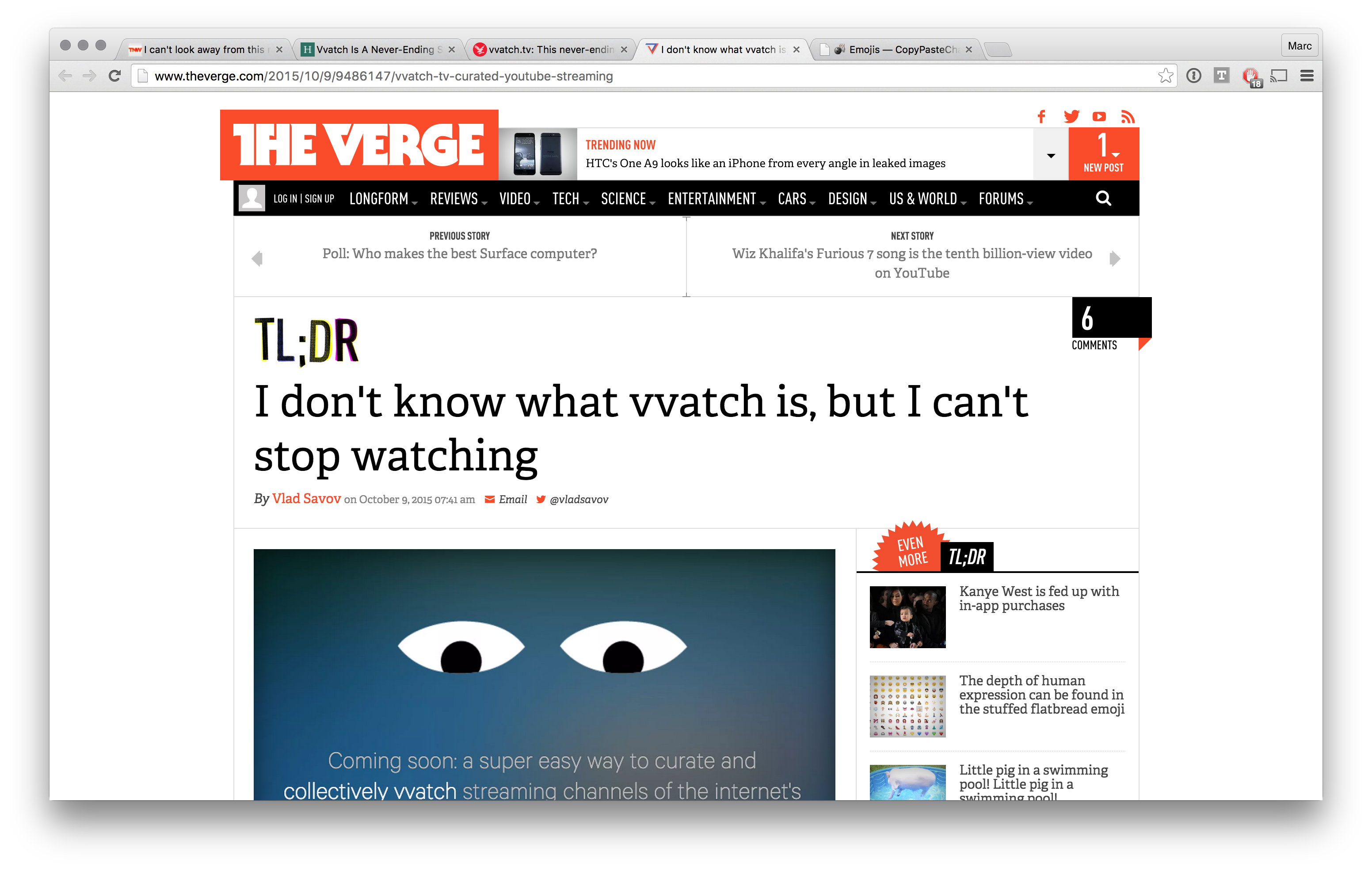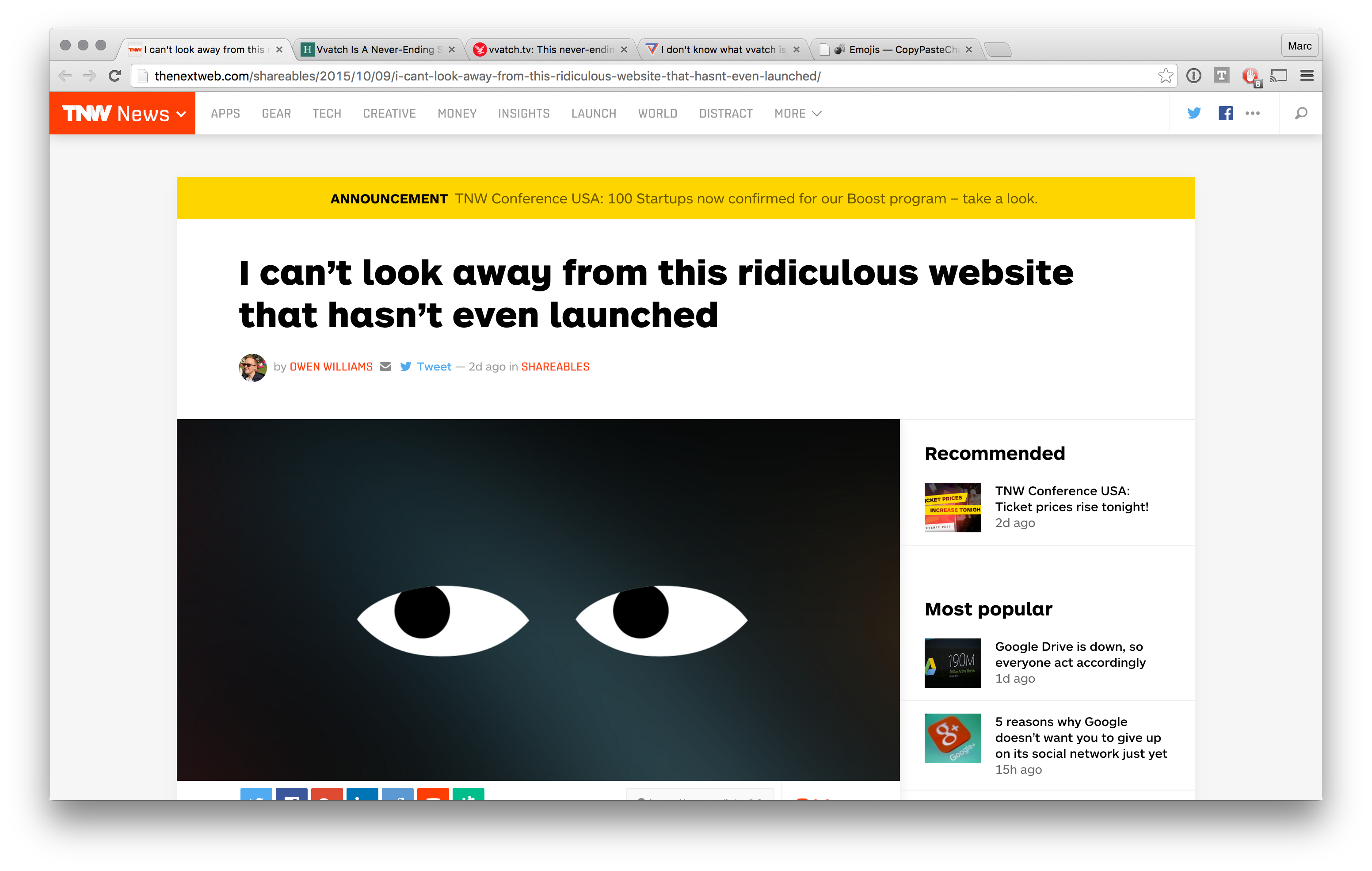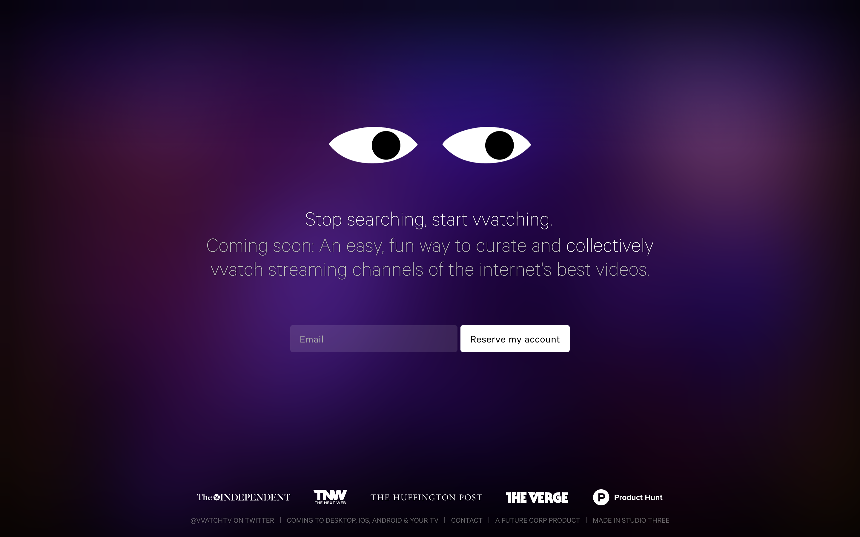 Hi everyone, vvatch.tv is a teaser for the forthcoming product, which we've been working on for the last 14 months. We're super excited by the attention our concept has already received on The Verge, The Next Web, Huffington Post, The Independent, and others.