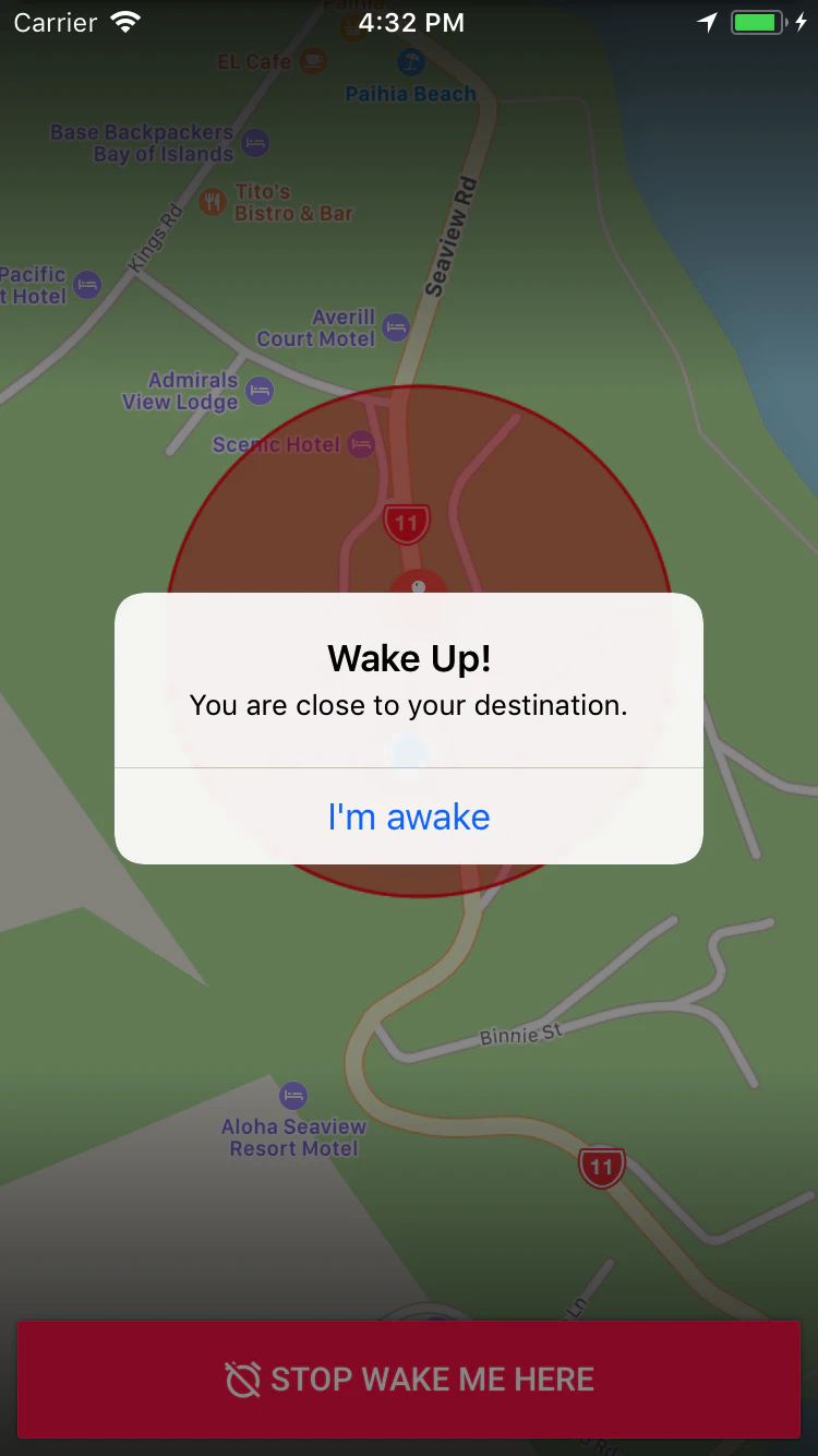 WakeMeHere is a location-based alarm clock which wakes you up at the location of your choice.