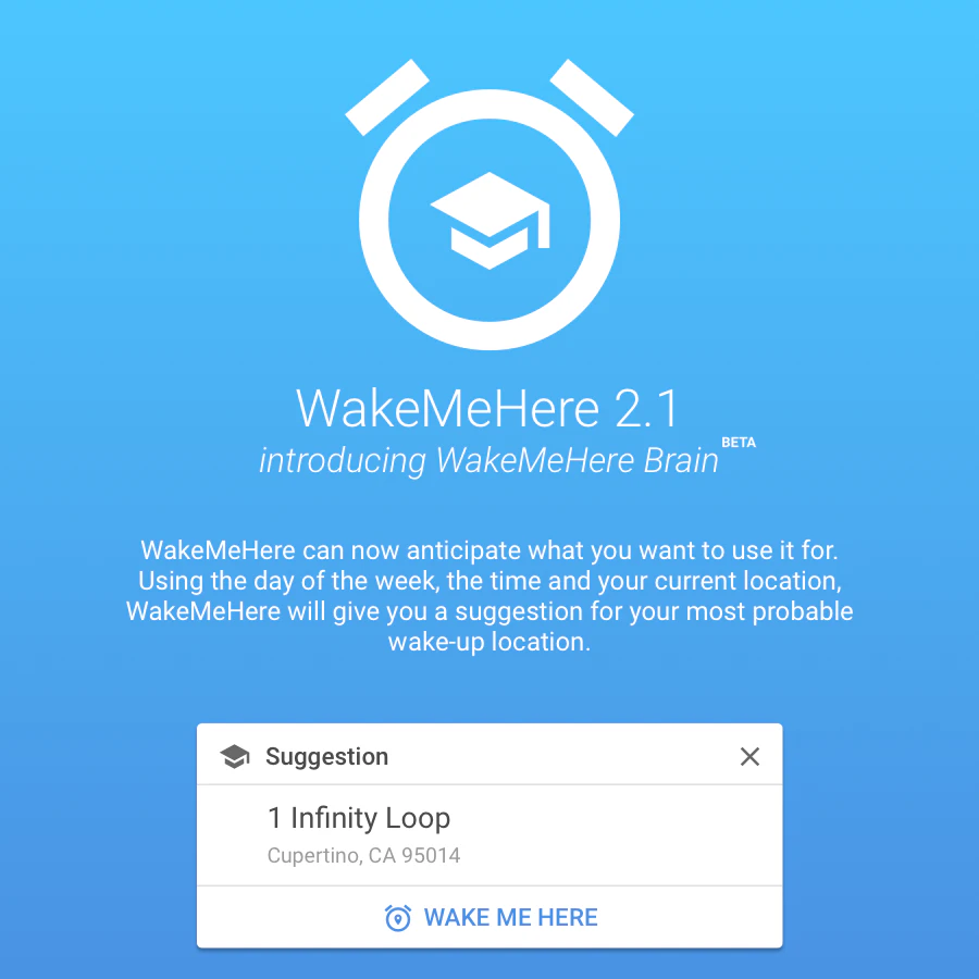 Have you ever wished to nap in public transportation without spending your brainpower on when to get out? A location-based alarm clock is the solution. Just set your destination - WakeMeHere takes care of the worry!