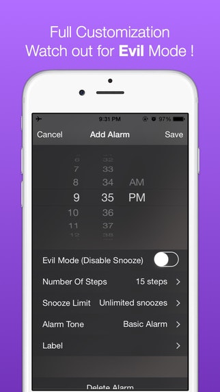 There's a bunch of apps out there that try to wake you up by making you shake the phone or solve puzzles. I like that this keeps it simple - you have to actually start walking with your phone to deactivate the alarm! From the app store description: "You probably think you can cheat the app, right? Try it! The app has smart algorithms to detect when you try t… See more